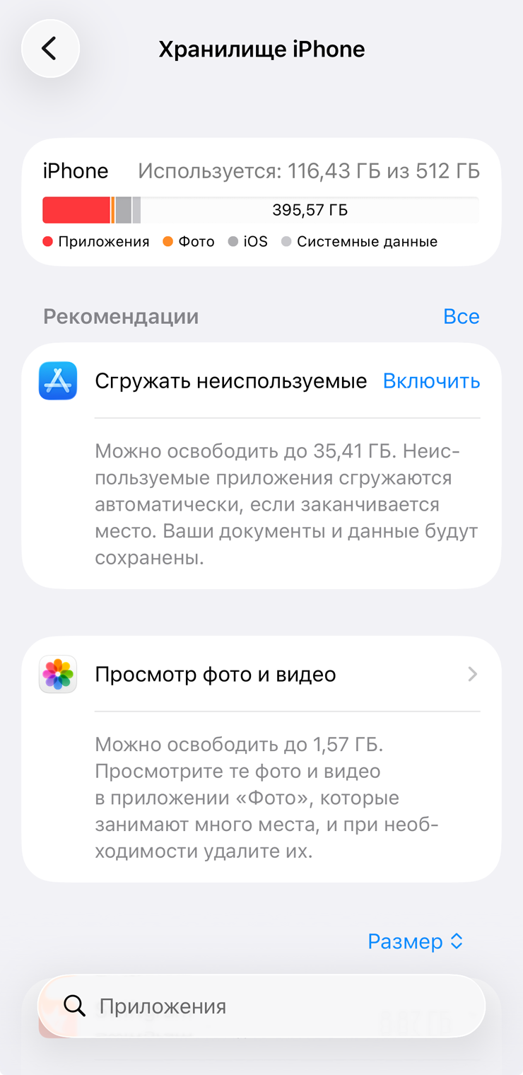 Как проверить, сколько места занимают системные данные на Айфоне