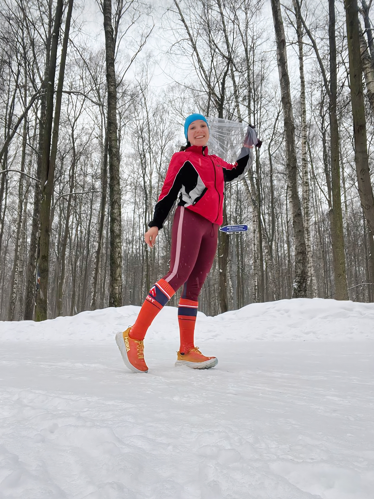 Жанна бегала немного и нерегулярно. Пришла в «Измайлонг» по приглашению подружек, поддержать знакомый благотворительный фонд, с которым у нас была совместная пробежка. Дальше — «провал в памяти». Теперь Жанну знает весь «Измайлонг», она бегает по 200+ км в месяц, пробежала несколько марафонов и регулярно ездит с другими ребятами на эстафеты, асфальтовые и трейловые забеги.