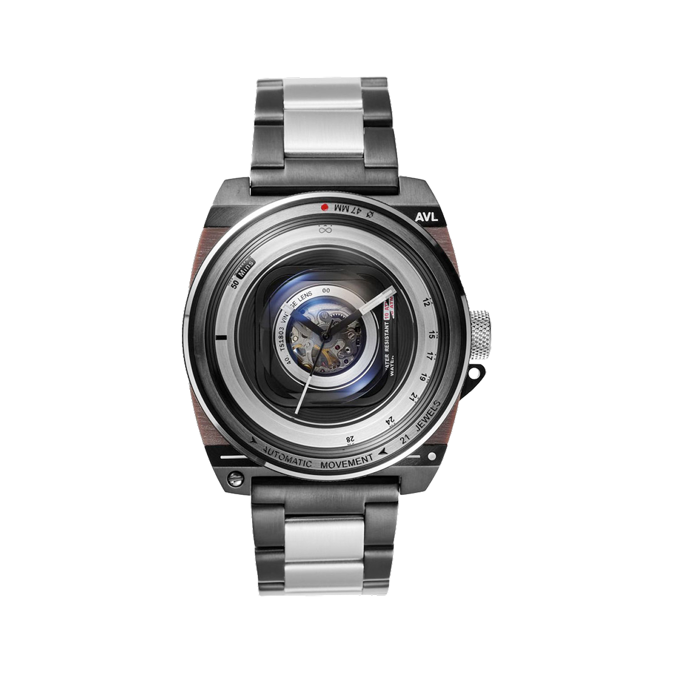 Tacs Avl II — это не только часы, но и фигурка робота, которой можно украсить интерьер. Циферблат, как и у других моделей в коллекции, стилизован под фототехнику прошлого века.