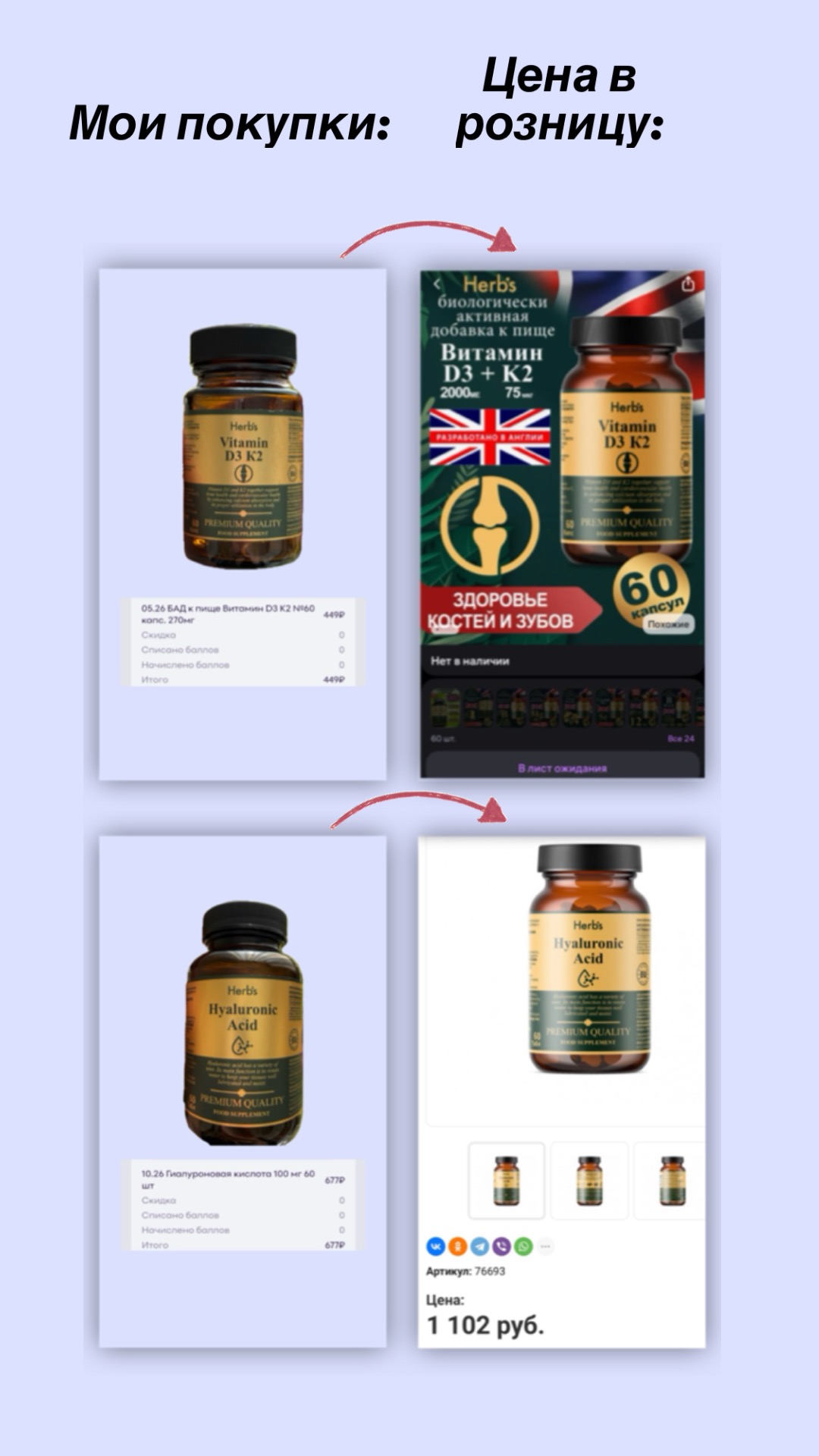- Витамин D3 К2 Herbs, 60 капсул на 2 месяца. Розничная цена от 700 ₽ до 1000 ₽. Приобрела за 449 ₽. Срок годности, на момент покупки, ещё 5 месяцев.