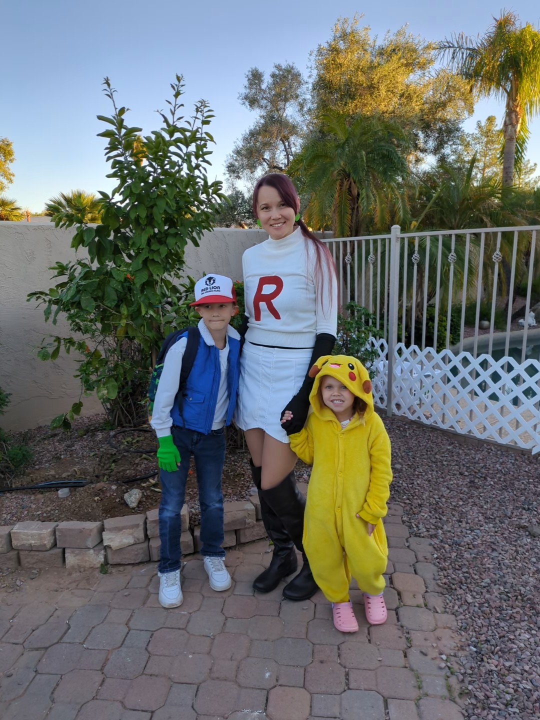 Параллельно дети высказывали пожелания, кем они хотят нарядиться на сам Хэллоуин. У нас в топе сейчас Покемоны, так что я боялась, начнется драка за роли, но все решилось мирно: старший будет Эшем Кетчумом (главным героем мультсериала, мальчиком, который хочет стать тренером Покемонов), средний — Черизардом, а дочь — Пикачу. Кем же будем мы с мужем? Ну, конечно, главными антагонистами — Командой Р, которые на службе зла и вечно в пролете.