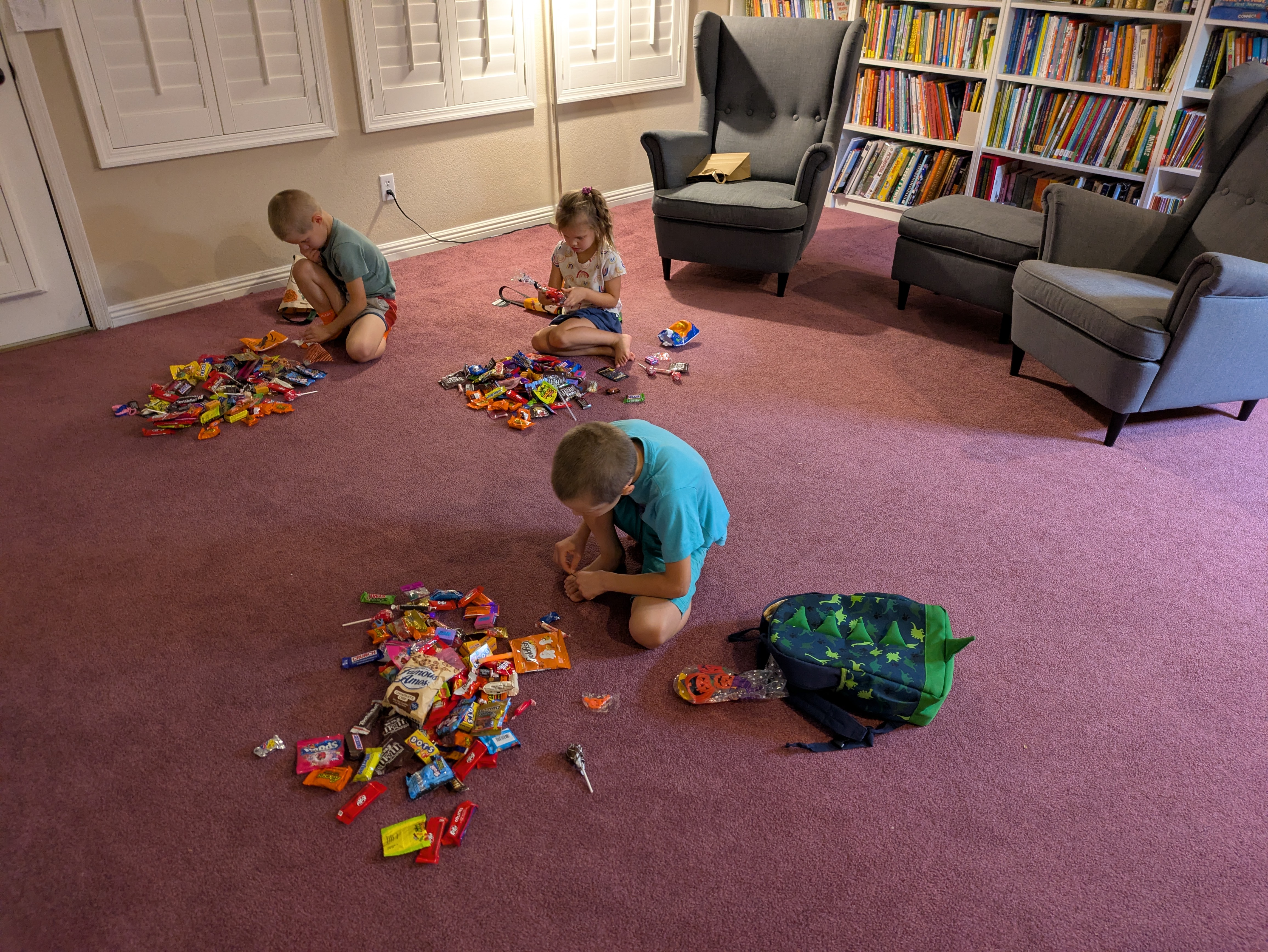 Дети остались очень довольны, тем более, что после конфетной прогулки мы разрешили им съесть неограниченное количество сладостей и вместе посмотрели «Кошмар перед Рождеством».