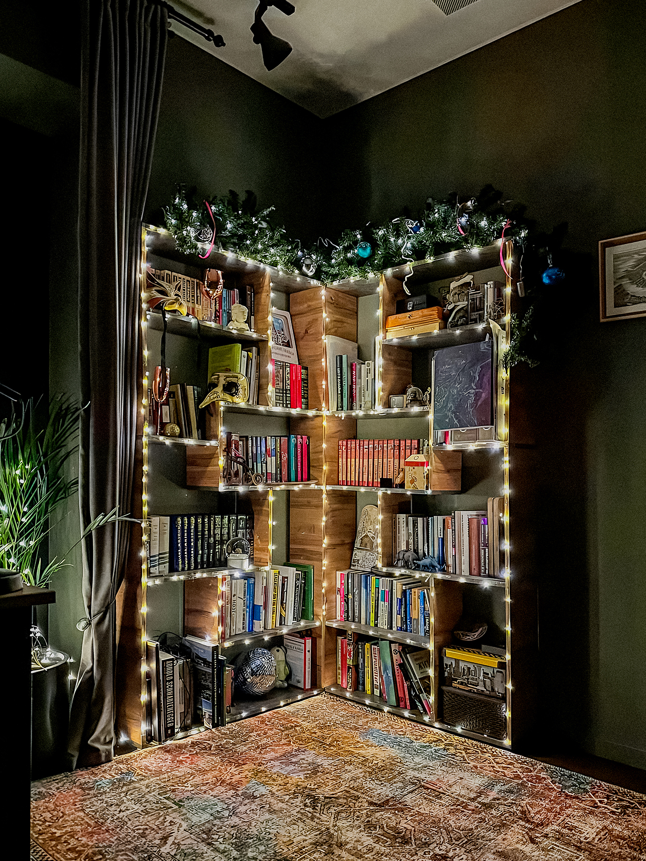 Как сделать. Этой самой «росинкой» обвести книжные полки по контуру. Подойдет любой открытый стеллаж, не обязательно с книгами. Хотя с книгами, конечно, смотрится по-гаррипоттеровски.
