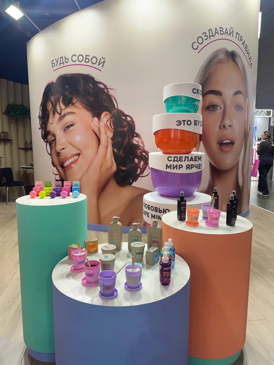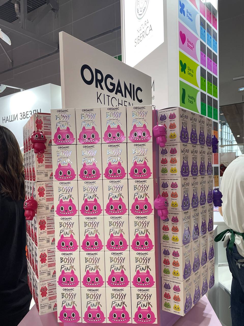 Выставка расположилась на нескольких этажах, поэтому я поднялась на третий этаж и начала осмотр с него. Первые стенды, которые меня встречали, это Natura Siberica, Альфа-банк и Recept. Так как косметикой Natura Siberica я пользуюсь, то выставка началась именно с них: здесь я увидела завывающие конверты, которые обещали гостям подарки, дегустацию нового продукта питьевого для хорошего настроения, здоровья и гармонии, лабубу-тинт, лабубу-хайлейтер. разных цветом. Причем сначала я вообще подумала, что это какой-нибудь корейский бренд, а оказалось российский. Консультант на стенде рассказал про новинки, это было интересно, хотя кое-что из серии ухода для волос я уже приобрела летом и пользуюсь.