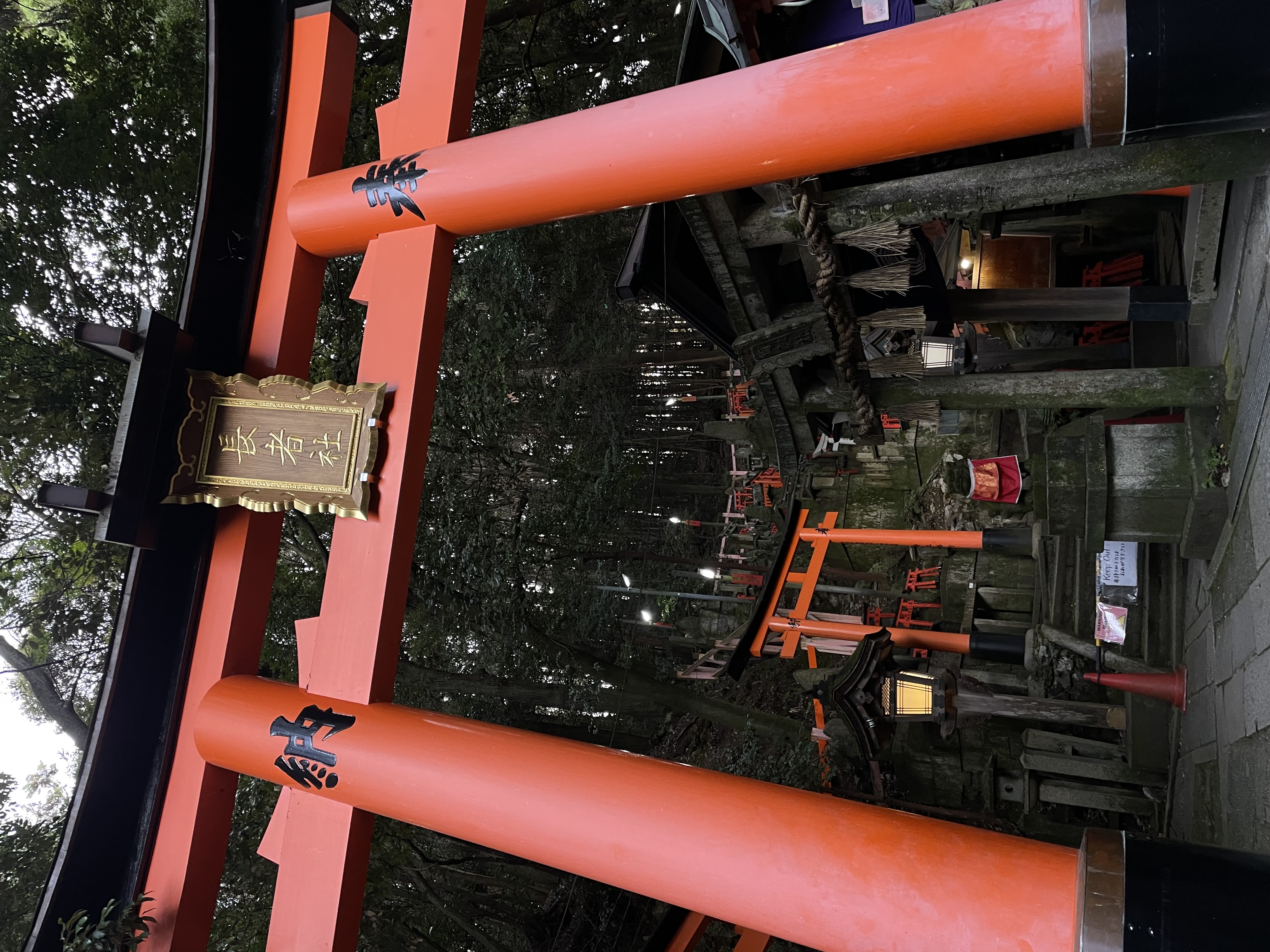 В какой-то момент я вообще осталась один на один с воротами. Плакаты, на которых предупреждают о возможности встречи с кабанами или обезьянами, немного навели страха, но кроме чёрных котиков никаких животных замечено не было. Сам подъём оказался совсем несложным. А единственный минус раннего визита — все лавки тоже ещё закрыты: ни покушать, ни сувениров купить. Мне всё равно безумно понравилось, я очень рада, что добралась.