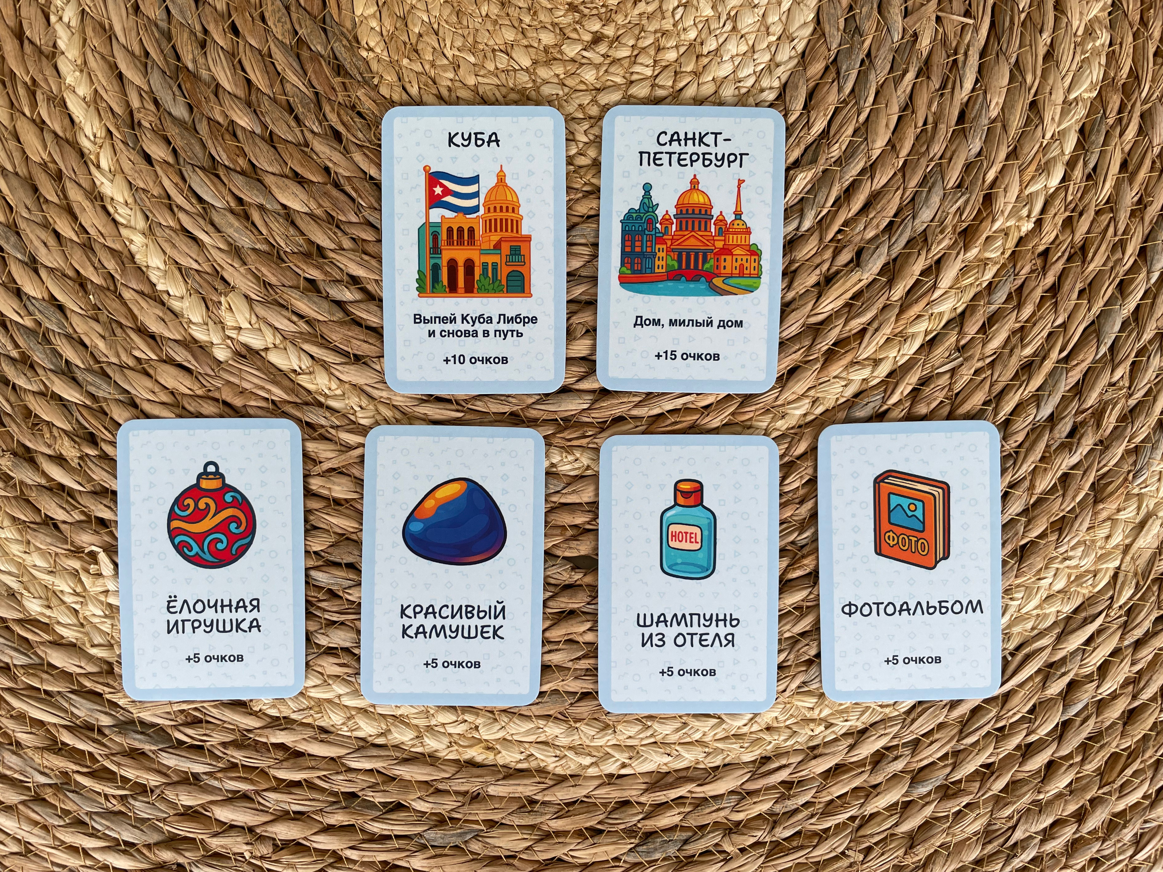 Мы собрали список таких мест и расположили их на карте. Задача игроков — добраться от Санкт-Петербурга до Кубы и обратно, а по пути собрать как можно больше артефактов, которые мы назвали ништяками. За ништяки и за достижение начальной и конечной локации даются баллы. Кто набрал больше баллов, тот победил.