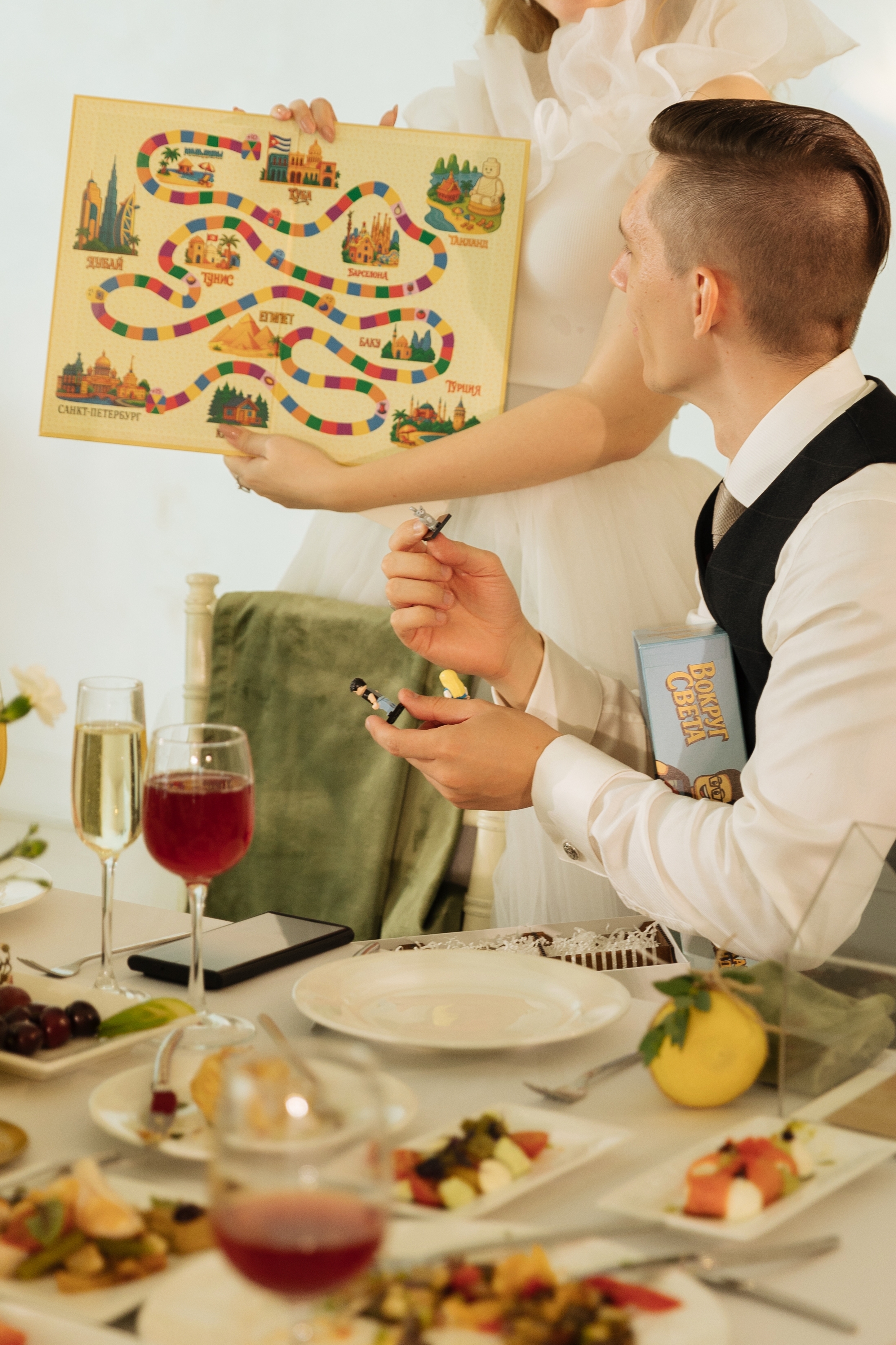 Всего на игру у нас ушло около трёх месяцев, включая продумывание идеи и механик, дизайн и печать. В начале проекта больше всего переживали за сроки — обычно они сдвигаются. Поэтому старались всё делать заранее с учётом того, что что-то придётся переделывать и перезаказывать. В итоге игра была готова больше, чем за неделю до свадьбы. Считаю это нашим большим достижением.