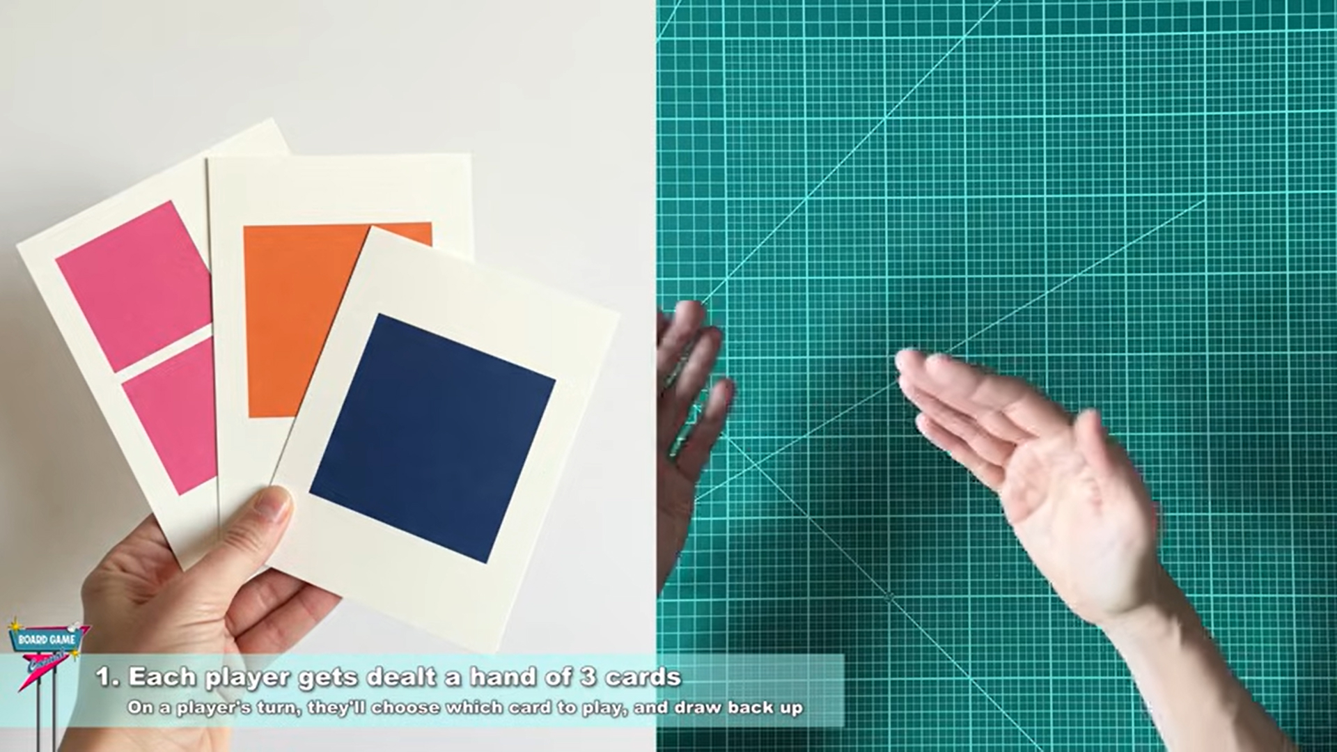 В целом игра простая и быстрая: игроки тянут карточки и ходят на клетку цвета, который вытащили. Но нам показалось это слишком простым, и мы начали думать, как её усложнить.