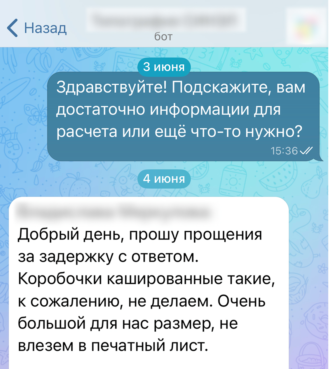 Снова самая большая проблема возникла с коробкой: нужную нам — она называется кашированной — либо было делать очень дорого, либо в нашем размере не могли сделать вообще.