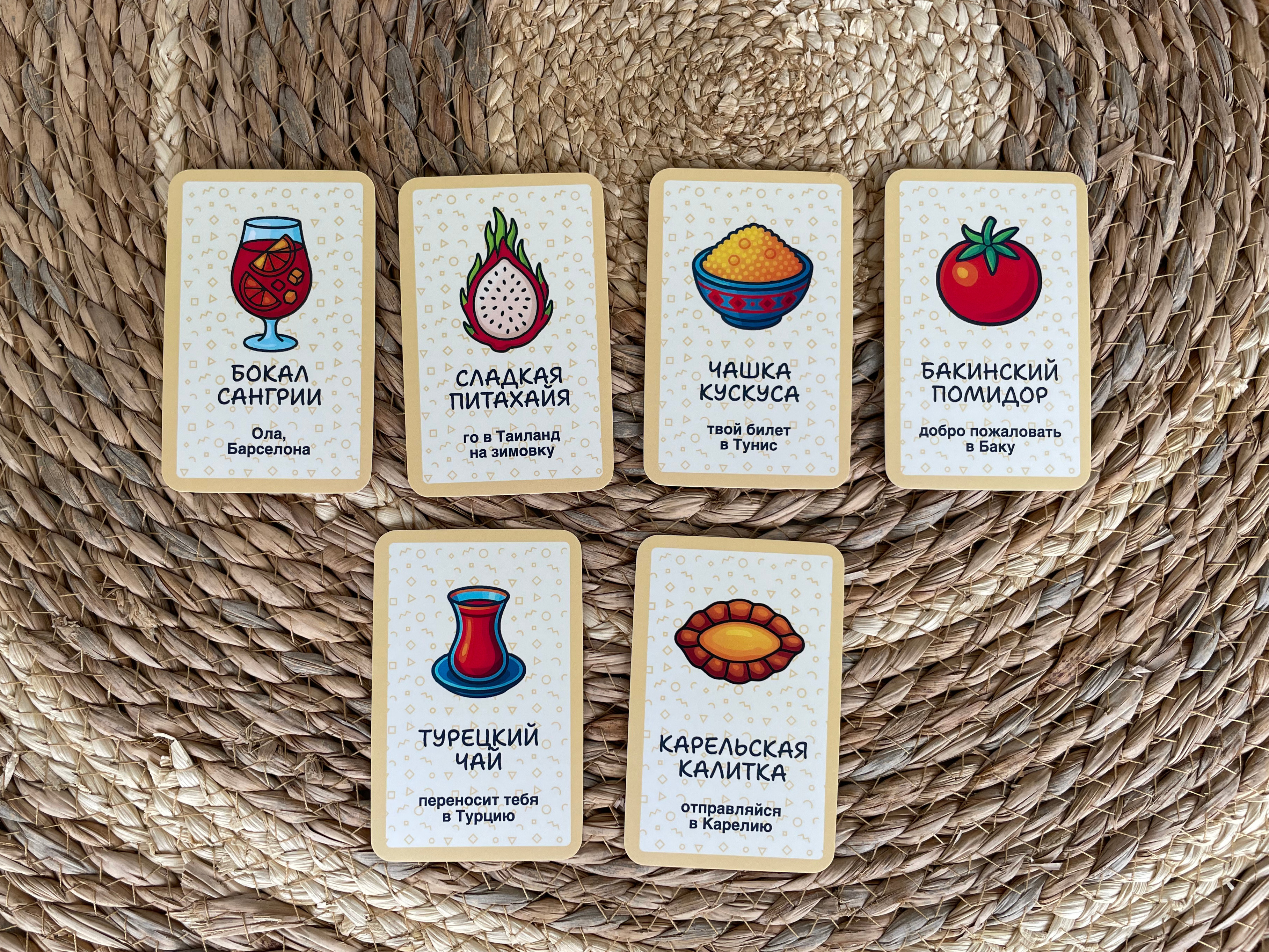 Карточки телепорта сделали тематическими по локациям — кускус в Тунисе, чашка чая в Турции, сангрия в Испании и т.д.