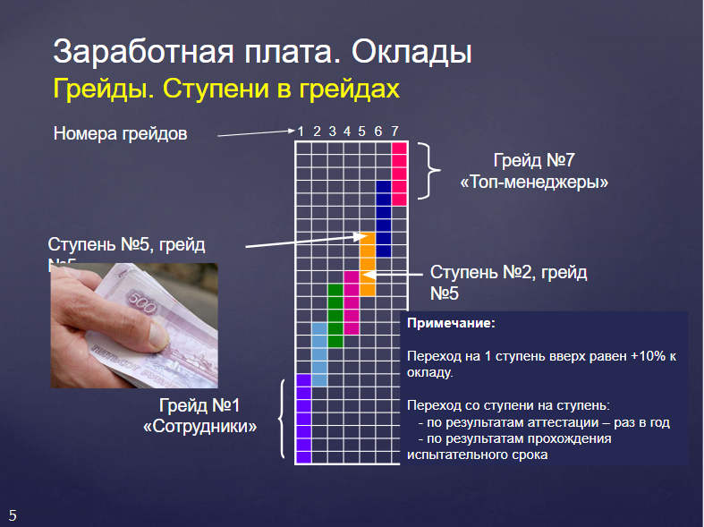 Вот примерные пропорции оклада в общем доходе сотрудника, которые я использую как отправную точку: