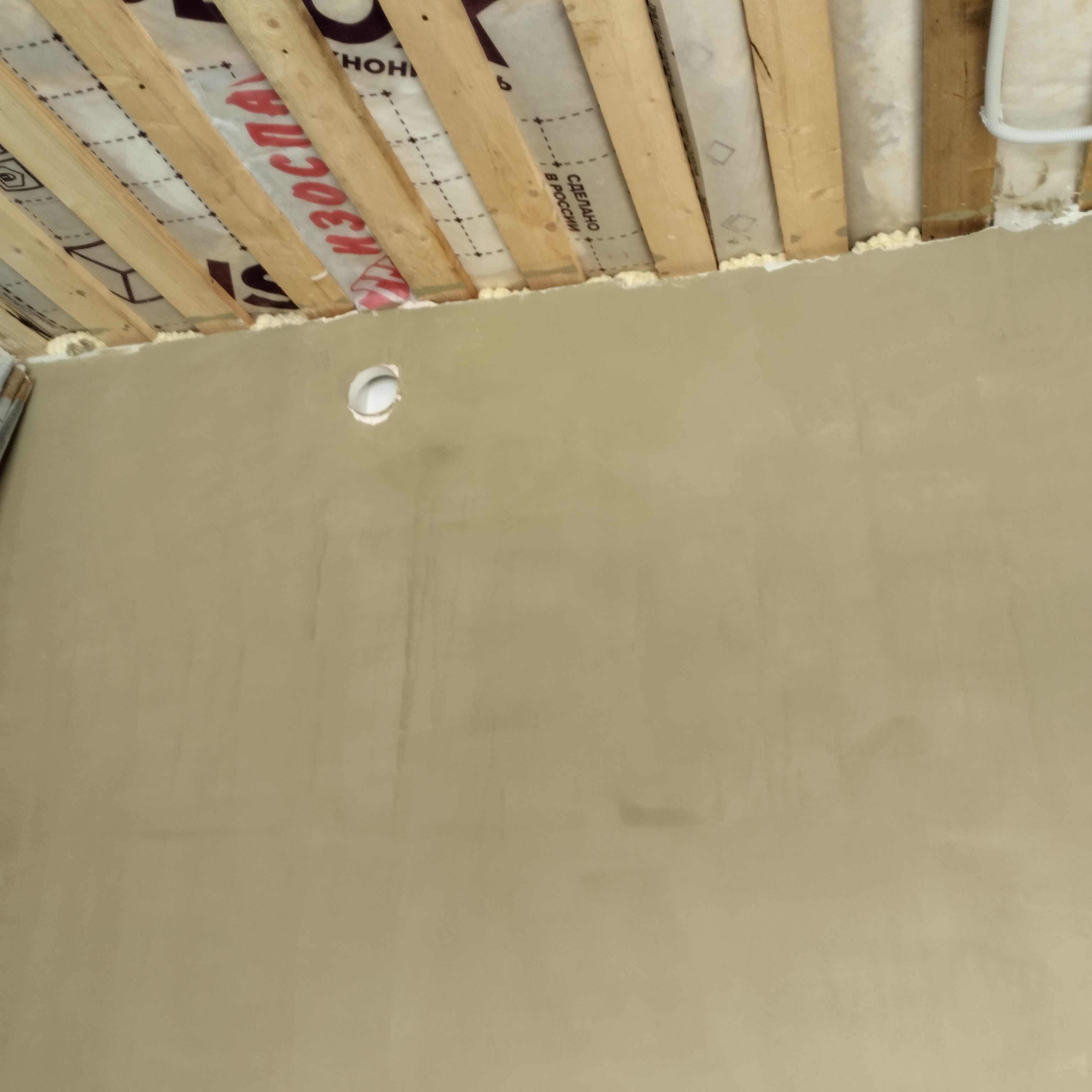 Кстати, в тот раз, когда капало, я позвонила строителю, приехал его подчинённый, залез на чердак и сказал, что это снег намело и он начал таять, что он отогнул метал на крыше — там, где попадал снег, и теперь все будет нормально. Я потом загуглила: может ли вода капать через пароизоляция, если там нет дыр. Ответ был, что нет, не может. Так что большой вопрос: что они нам постелили вообще.