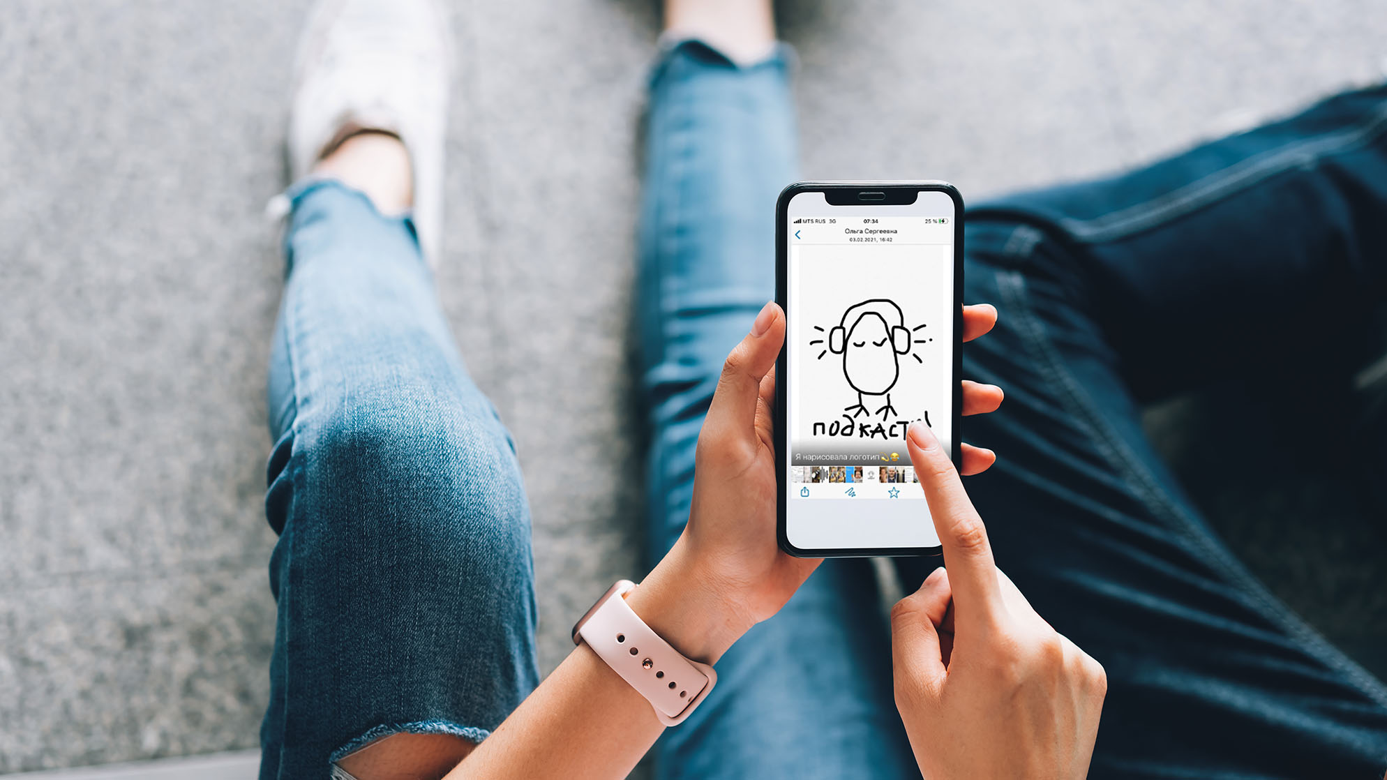— Смотри, я нарисовала логотип подкаста. Пока кормила дочку, подумала: а почему бы не начать записывать короткие ответы на детские вопросы? Но не на те, про которые уже все сказали, вроде почему трава зелёная и небо голубое, а, например, про то, что такое «сдача».