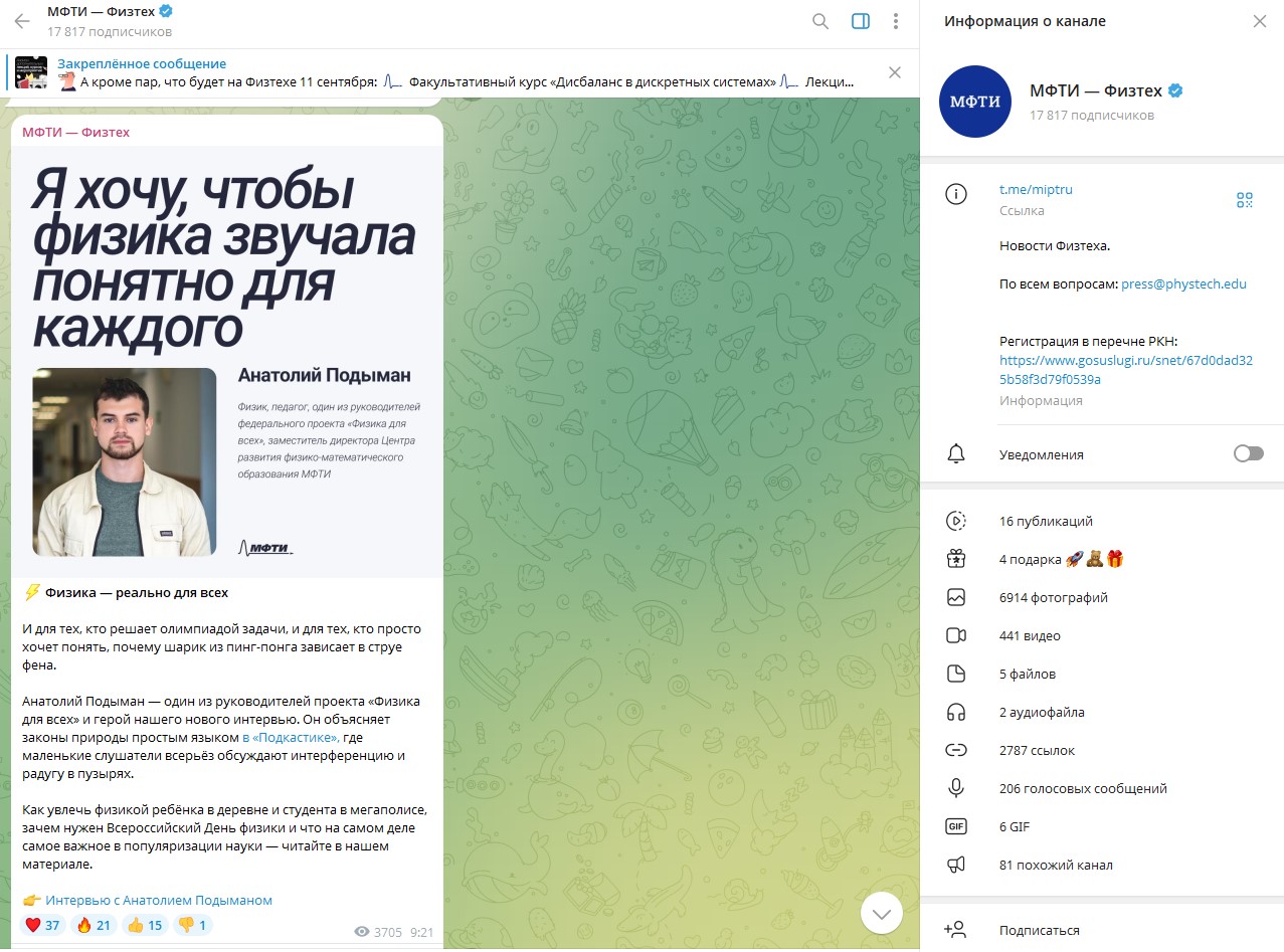 Недавно вместе с МФТИ мы записали цикл «Физика для всех», где настоящий учёный из Физтеха объяснял детям сложные явления простыми словами.