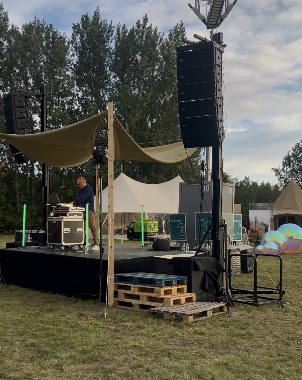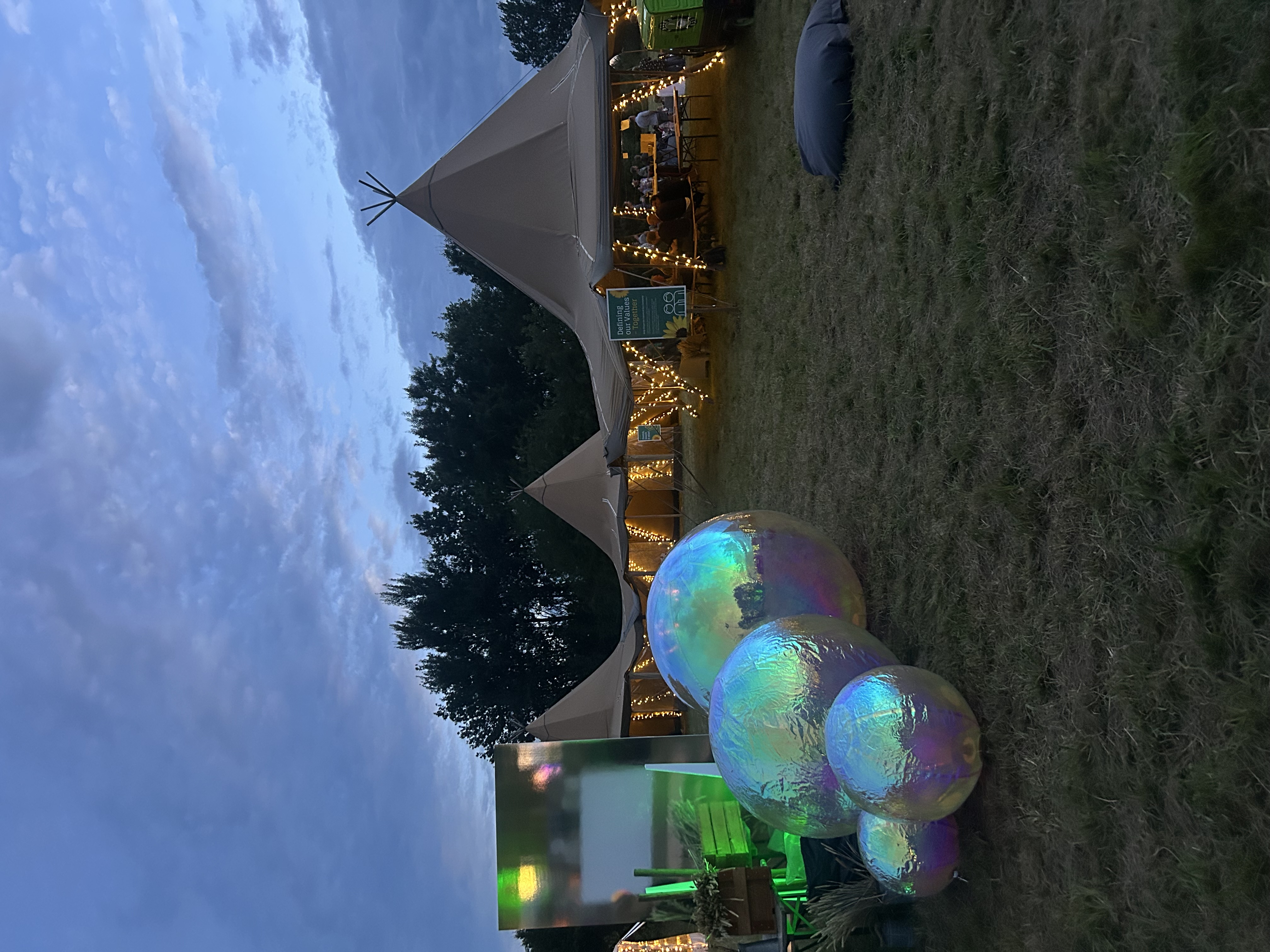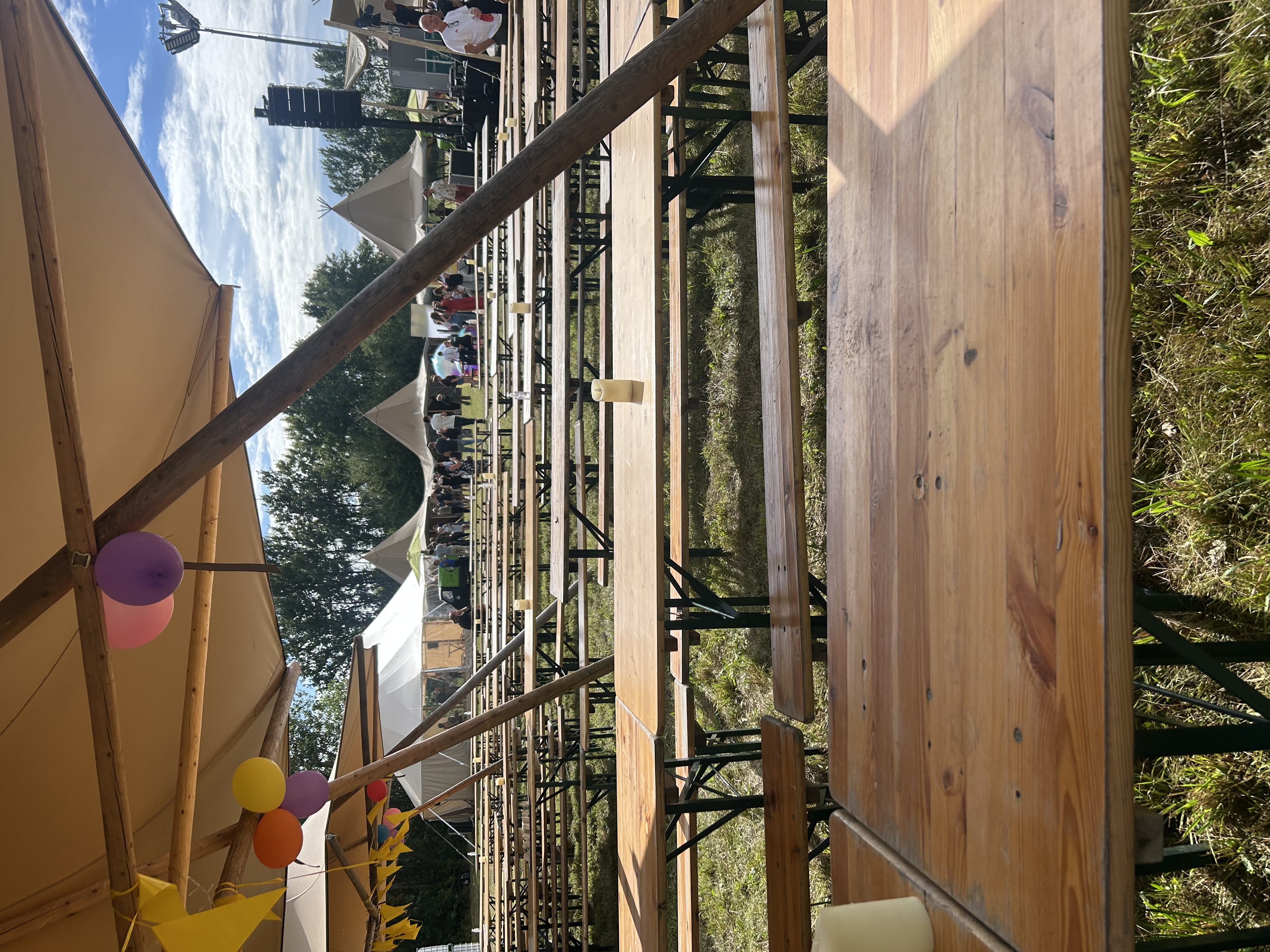 Праздничная территория находится на огромном поле, где поставили палатки с едой, столы, кофе-траки, сцену диджея и игровые зоны, с играми типа пинг понг, метание на лестницу (Ladder Toss), и спайкболл.