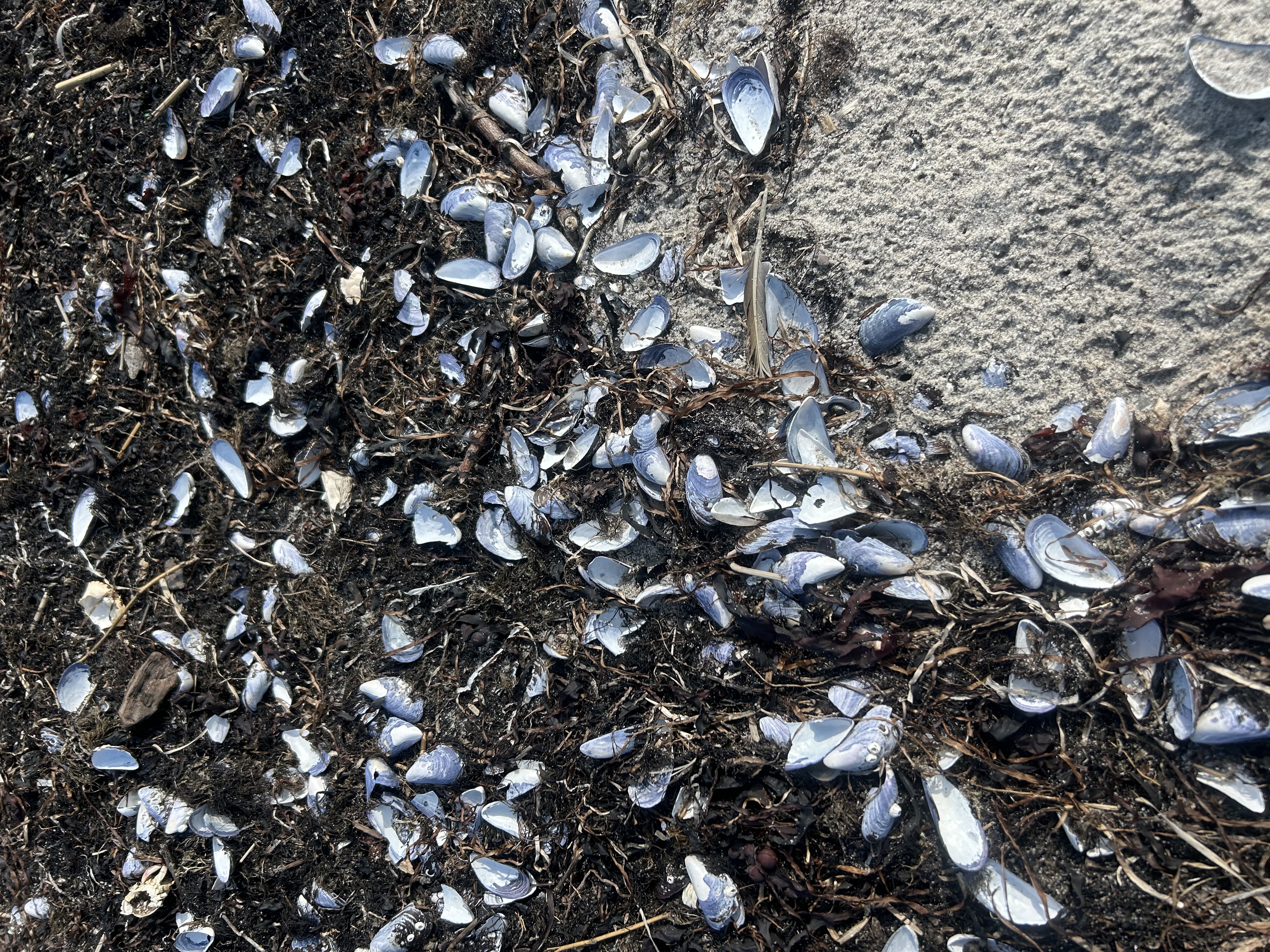 На берег вынесло много водорослей, ракушек и крабов. Хожу высматриваю необычные ракушки, но все одинаковые, а я уже в прошлый год на память увезла две штуки фиолетовых ракушек.