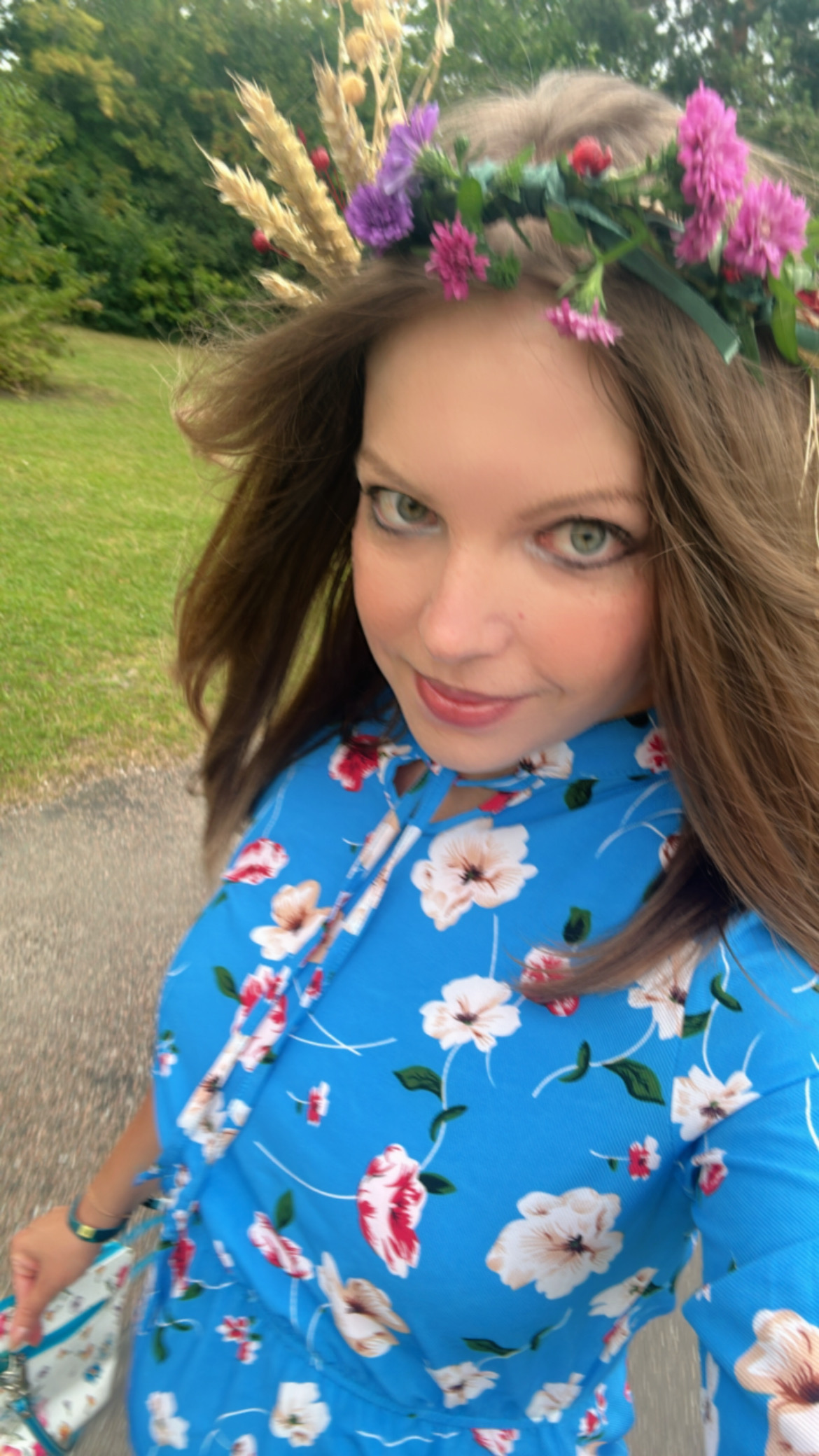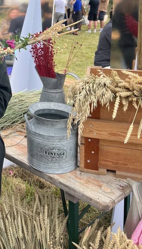 Вот единственная фотка моего рукоделия, половина из цветов, половина из колосков, это я бегу обратно на праздник и фоткаю свое творчество на ходу.