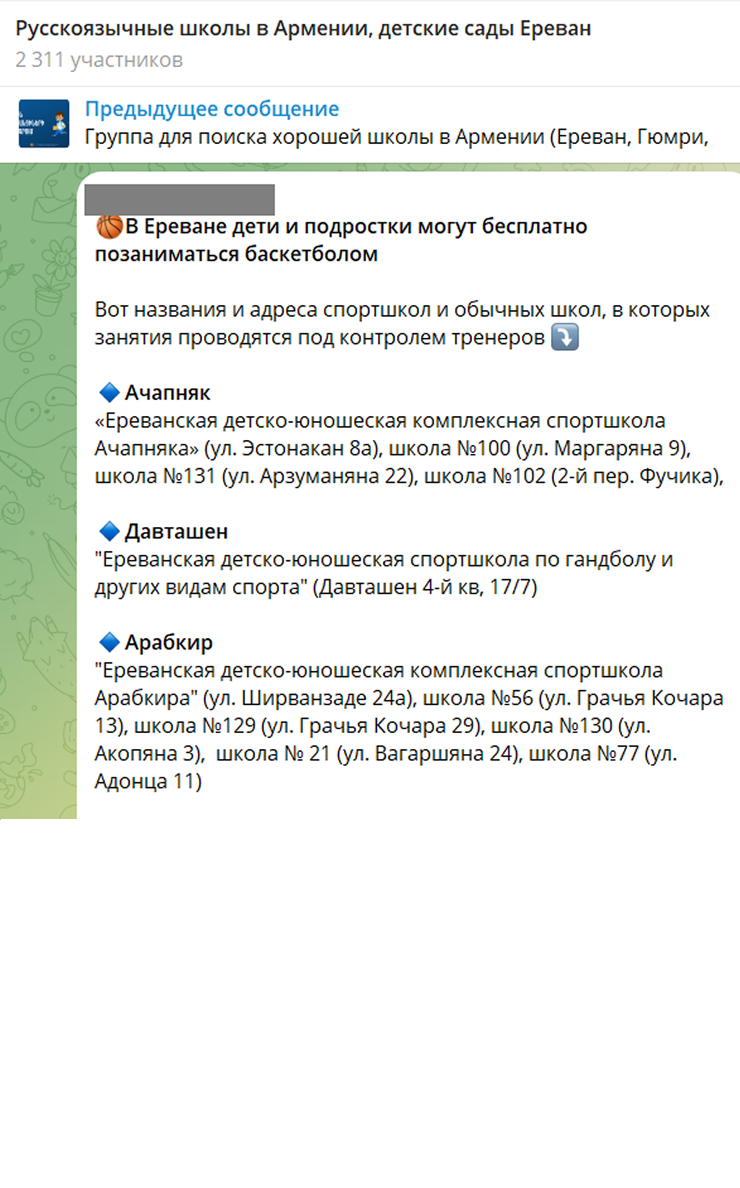 - «Мамы и папы в Ереване 🇦🇲 чат»;