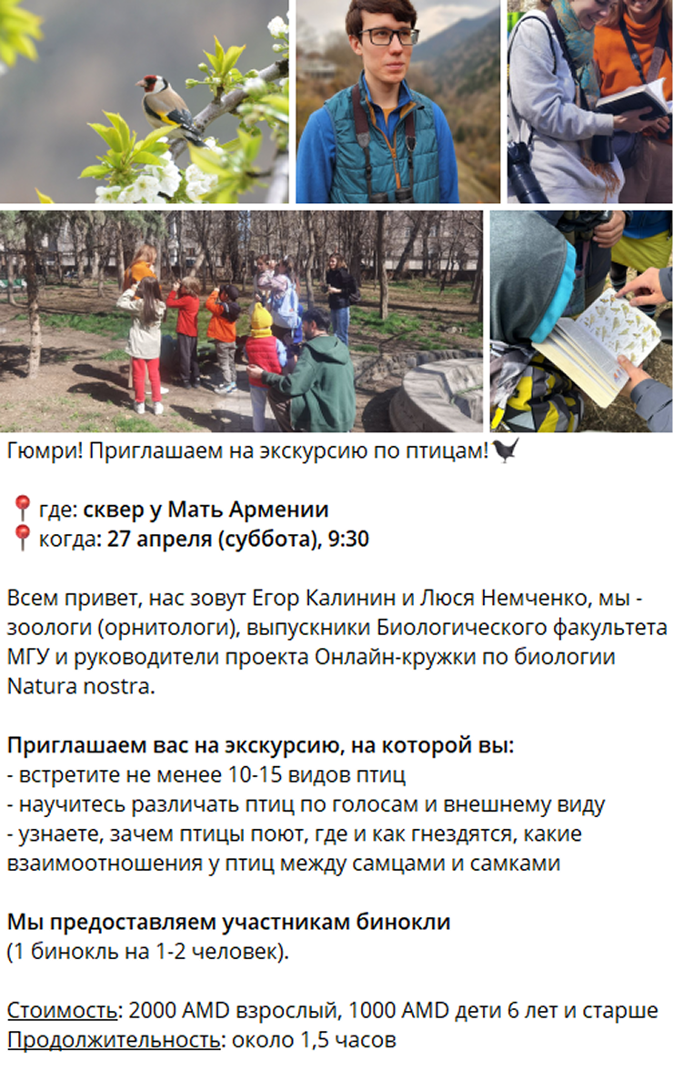 Из необычного, что я встречала, — исторический кружок, курс по ненасильственному общению и бердвотчинг — наблюдение за птицами.