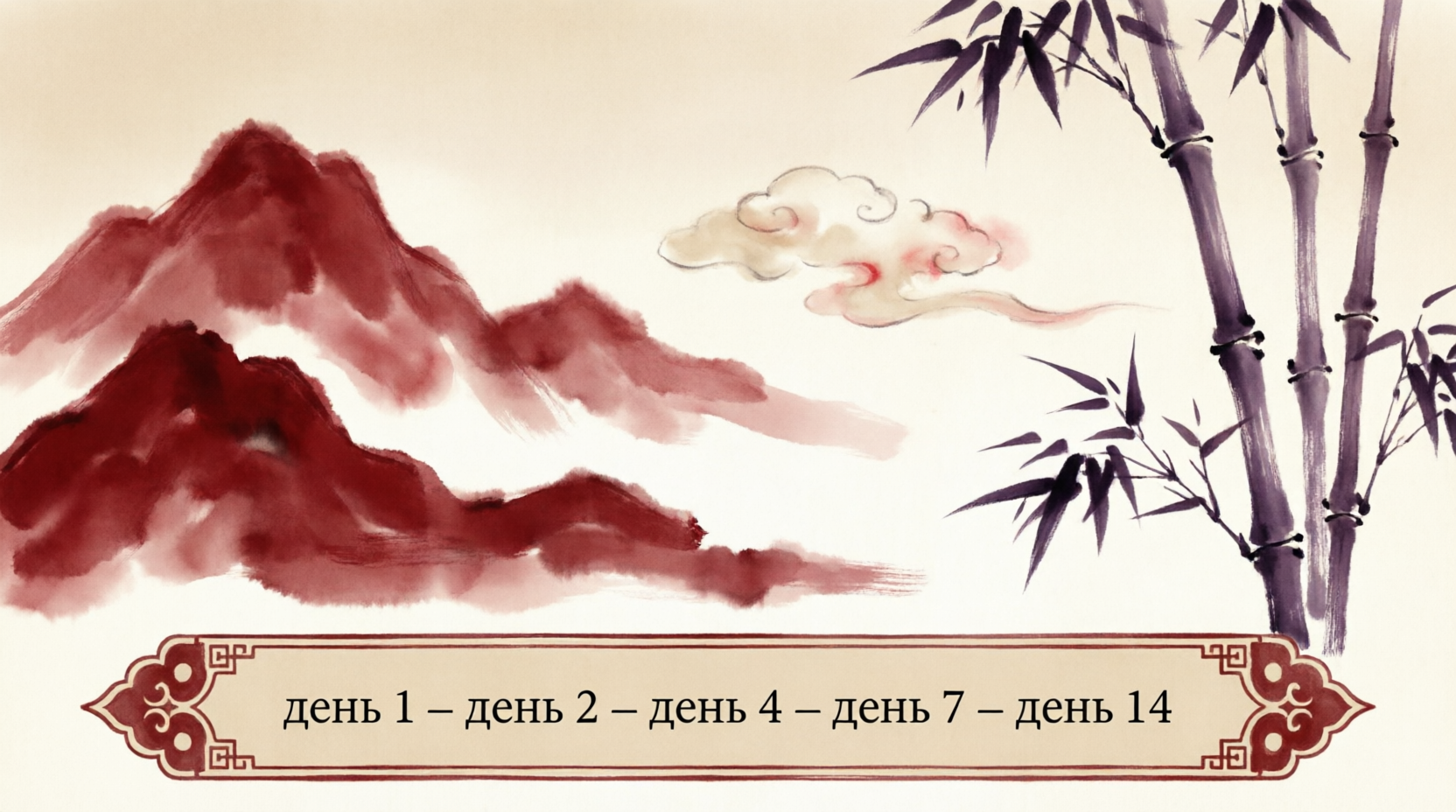 Более «растянутый» вариант: • день 1 — день 2 — день 4 — день 7 — день 14.