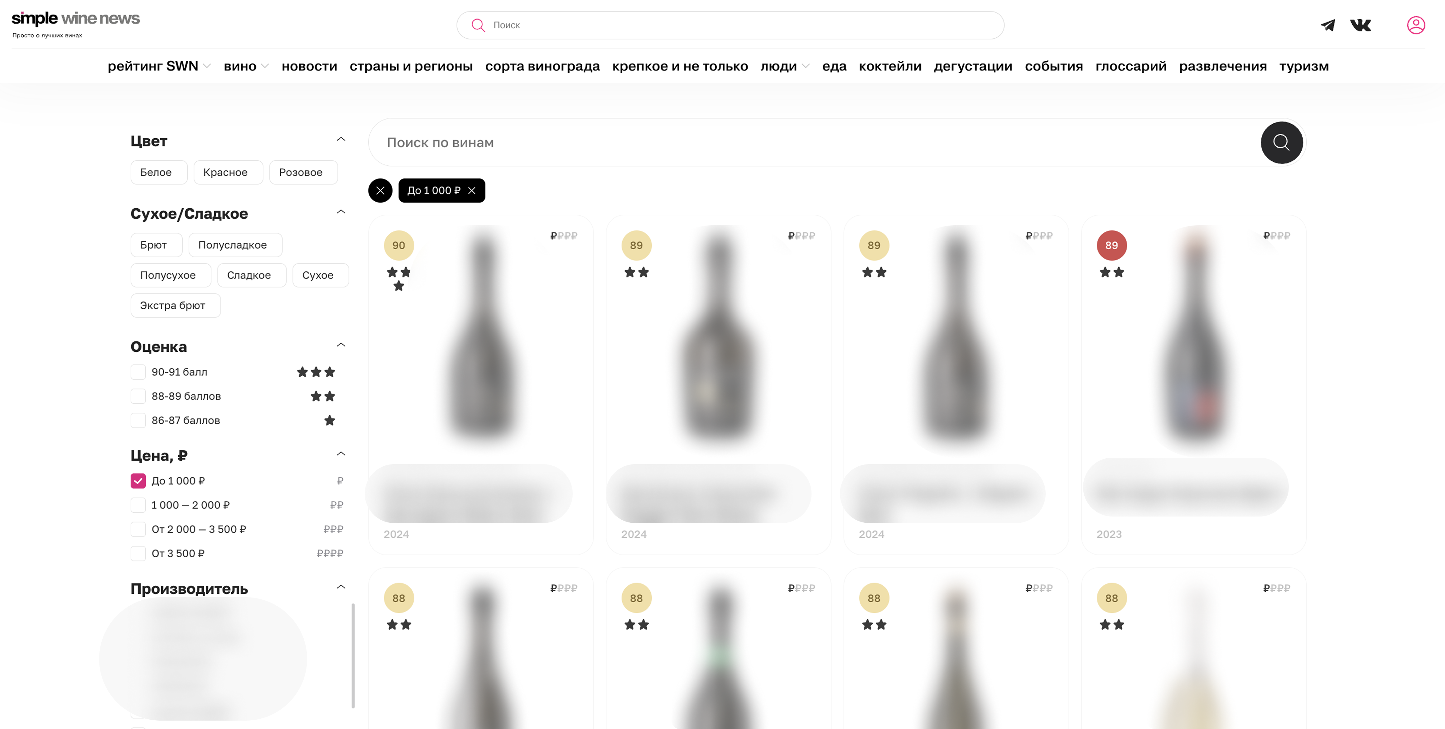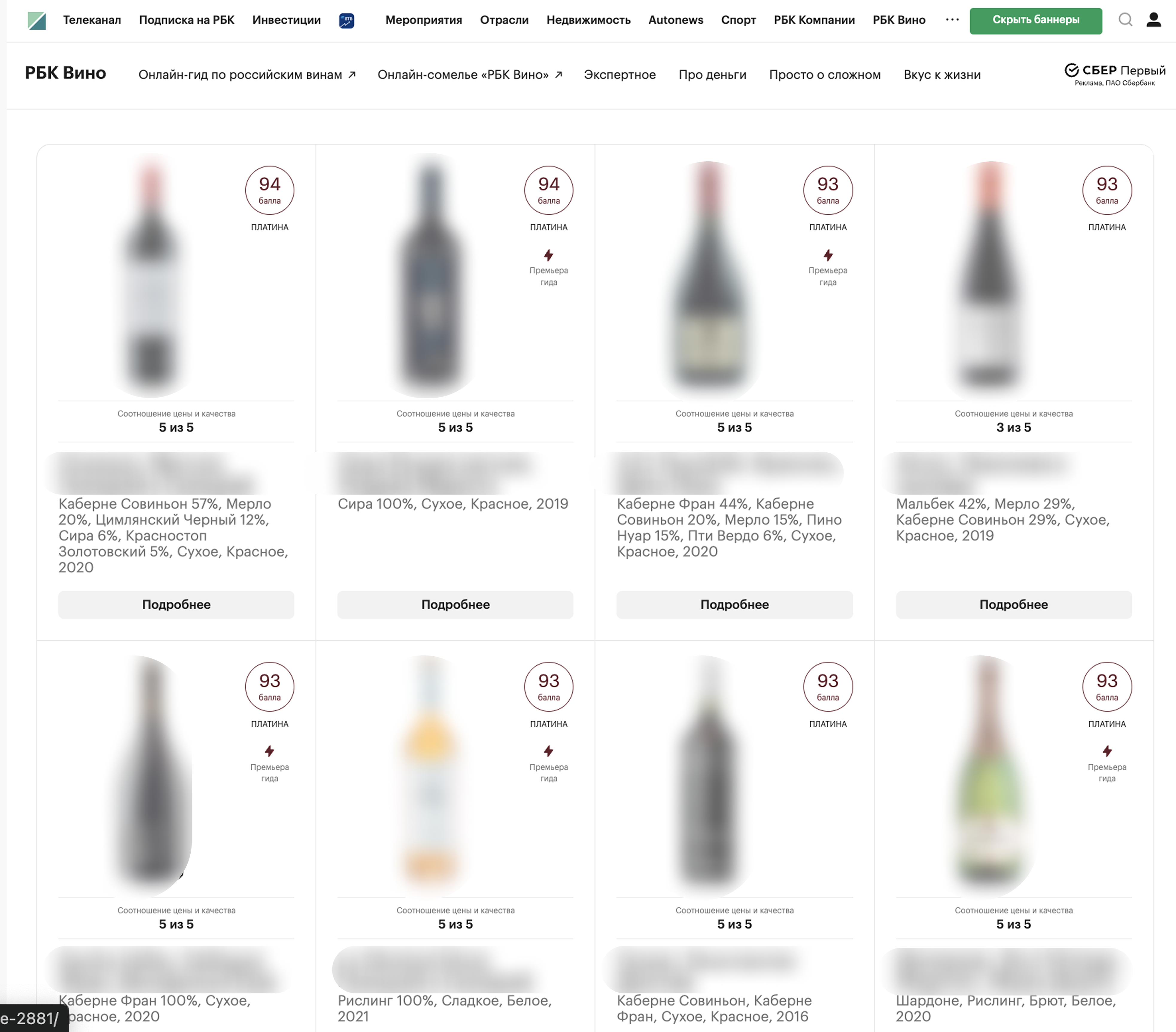 Вывод: на мой взгляд, самый удобный рейтинг, большой выбор вин разных ценовых категорий. Можно найти как вина, представляющие коллекционный интерес, так и те, что стоят до 1000 ₽.