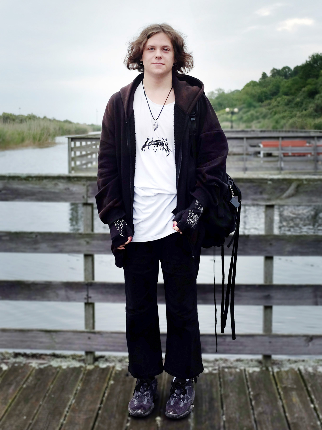 Я всего три года как начал сам покупать вещи. В основном заказываю в VK, там много дизайнерских вещей. Иногда у марок есть сайты, а иногда — группа на 5 тысяч подписчиков. Нравится, например, Lobotomy — на мне как раз лонгслив оттуда.