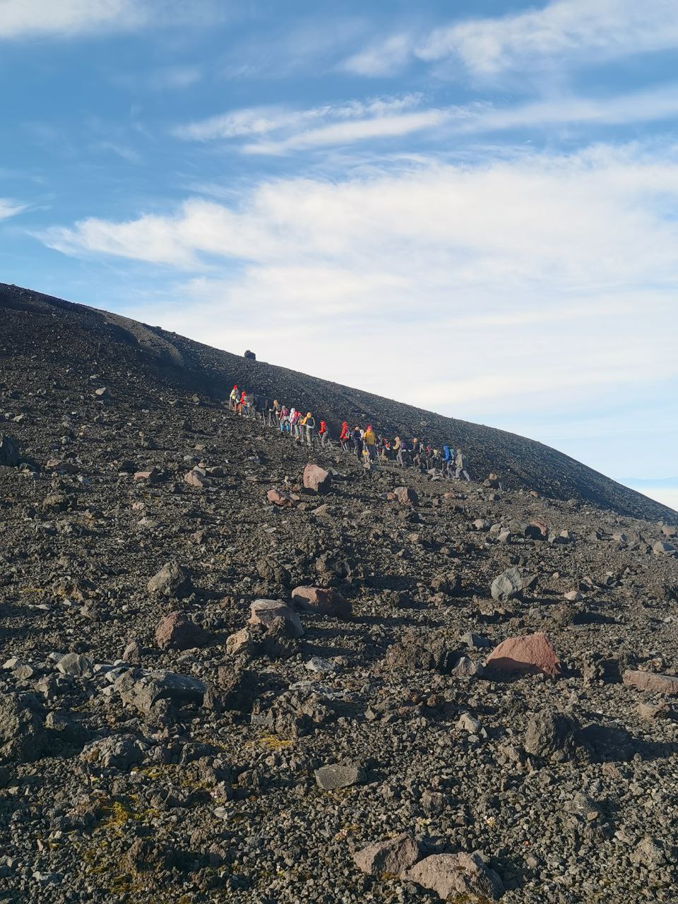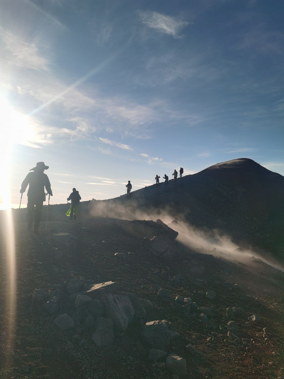 Несколько дней и переходов спустя у нас был гвоздь всей программы — восхождение на Авачинский вулкан. Этот вулкан считается достаточно простым, подняться на 2741 метр над уровнем моря может любой человек в хорошей физической форме. Наш инструктор решил сделать восхождение немного более пикантным: мы шли не просто так, а после ходового дня, почти не отдохнув, встречать рассвет. Это значило 6 часов ходу в темноте, сквозь холод и пронизывающий ветер, а еще мы забыли в лагере перекус, и своей заначки у меня не было. Однако я знала, что кто-то добрый из нашей группы несет дыню, арбуз и шампанское для особой атмосферы на вершине, и эта мысль подбадривала. Идти было сначала скучно и монотонно, потом подъем стал круче, потом под ногами исчезла нормальная почва и началась сыпуха — мелкие камни, которые скользят под ногами, и сделав шаг вперед, по инерции едешь на полшага назад. На участке пути перед самой вершиной даже провешаны веревки, потому что иначе залезть нереально, и последние метры набора высоты работают руки, а не ноги.