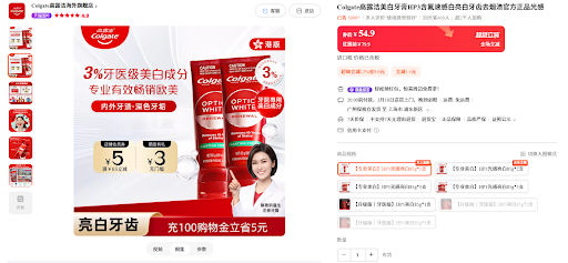 Заглавный вид карточки товара на Tmall Global в браузерной версии на примере карточки бренда Colgate