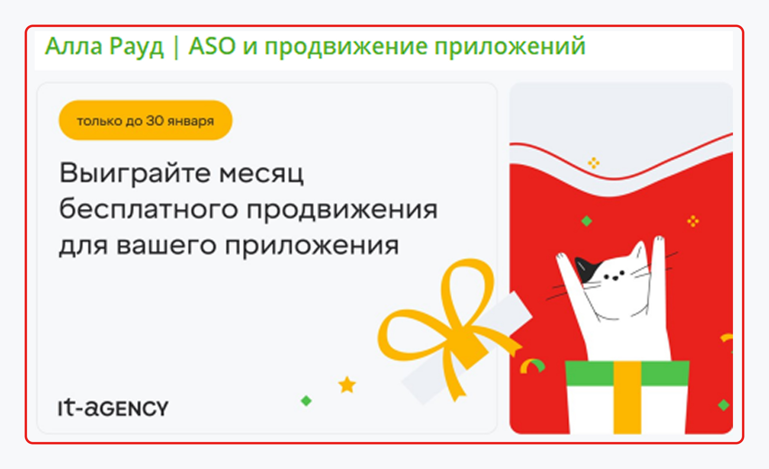Компания стала победителем конкурса в Telegram-канале и получила в награду месяц бесплатного продвижения в мобильных сторах.
