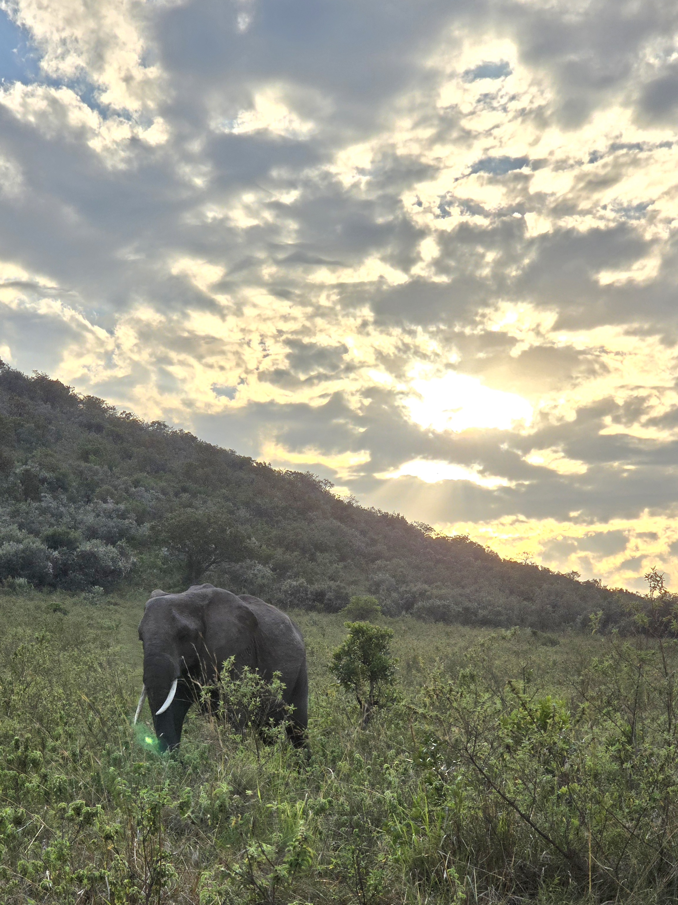 Следующее утро начиналось в 05:30, мы выезжали на рассвете. Высокий жираф на фоне солнца, слон на фоне гор, слоновая семья со слонятами, буйволы, антилопы, кабаны, страусы — саванна была полна жизни.