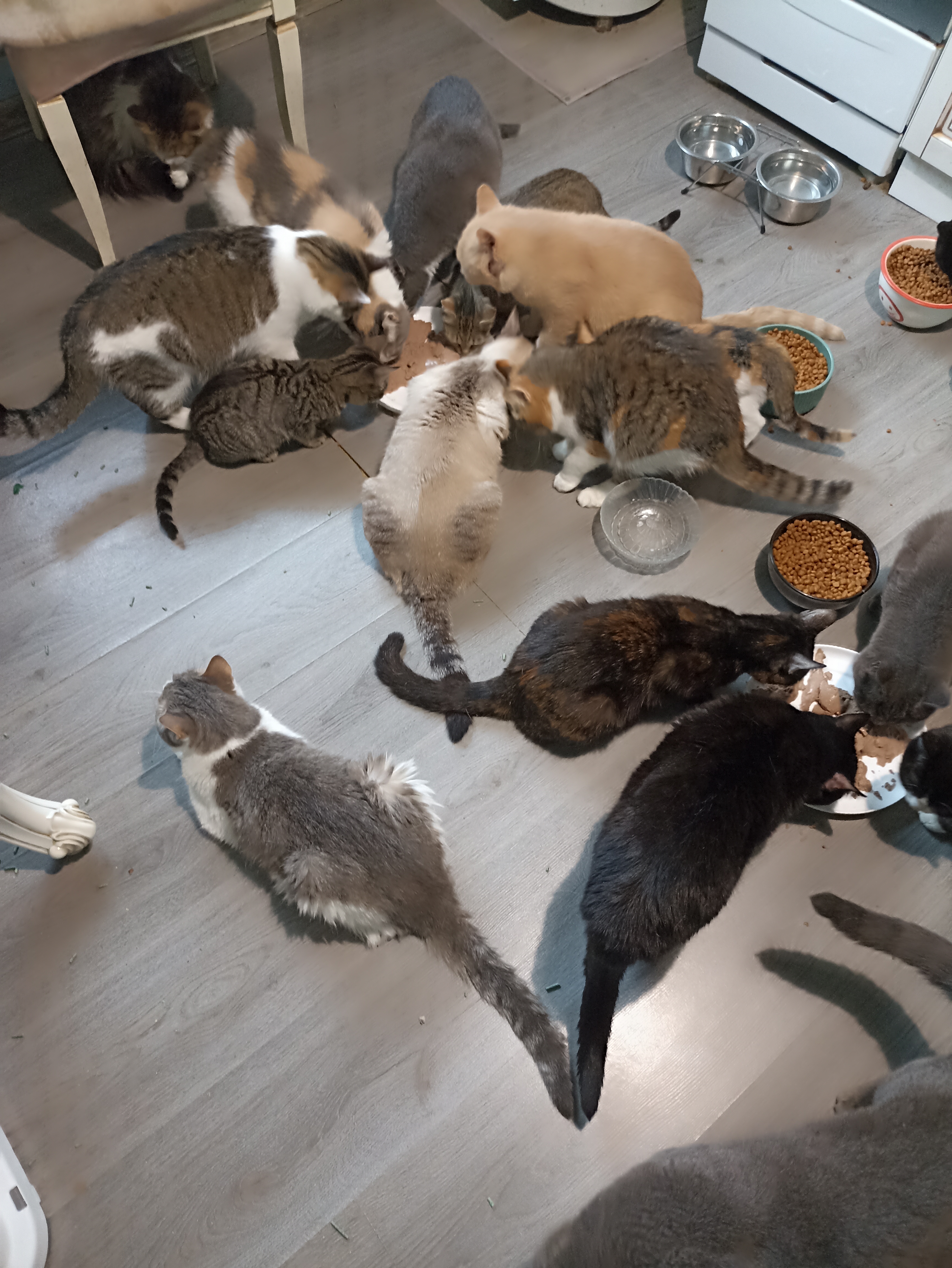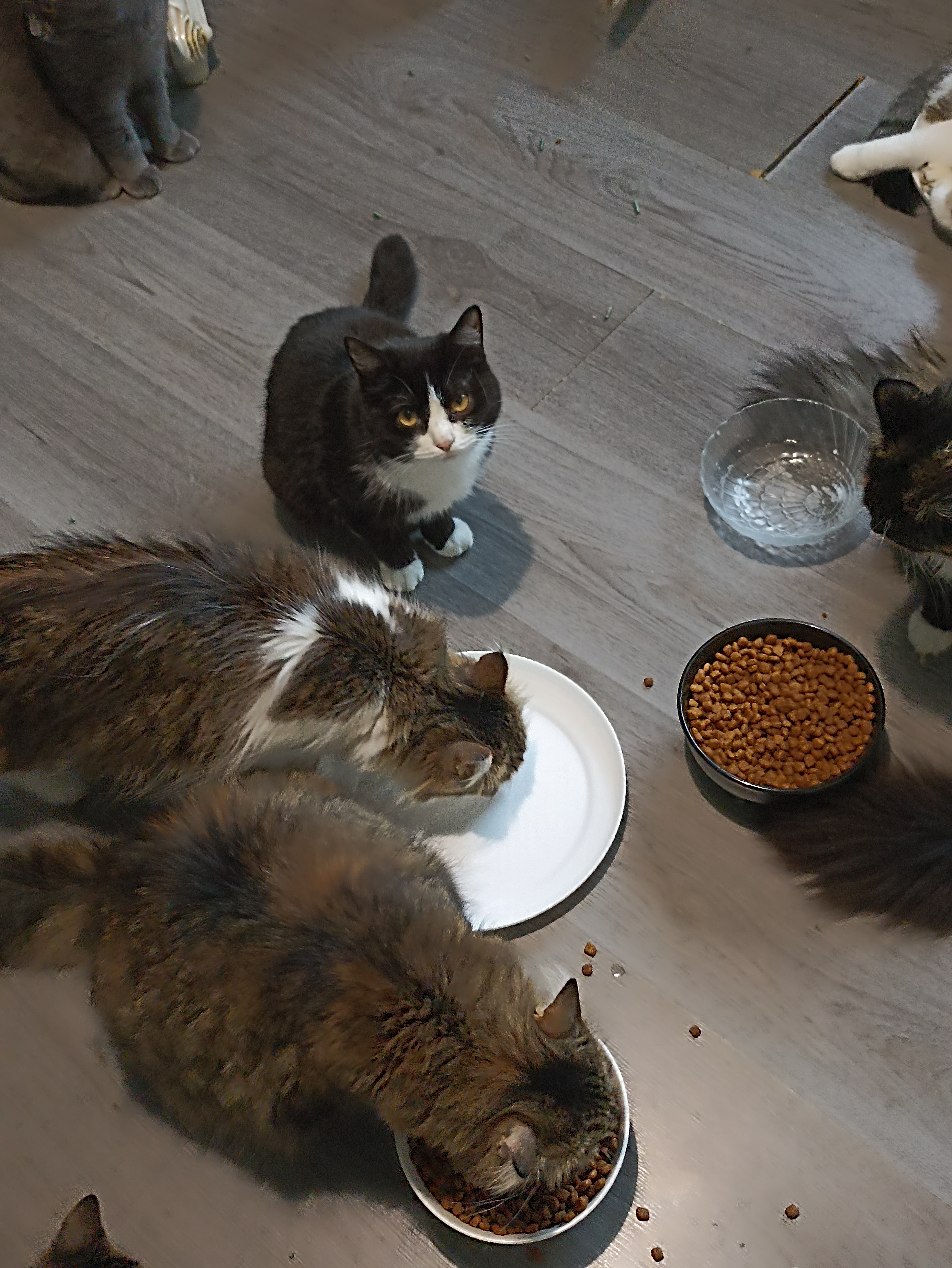 В доме со мной живёт большое количество кото-хвостов. Кушать — это их любимое слово).