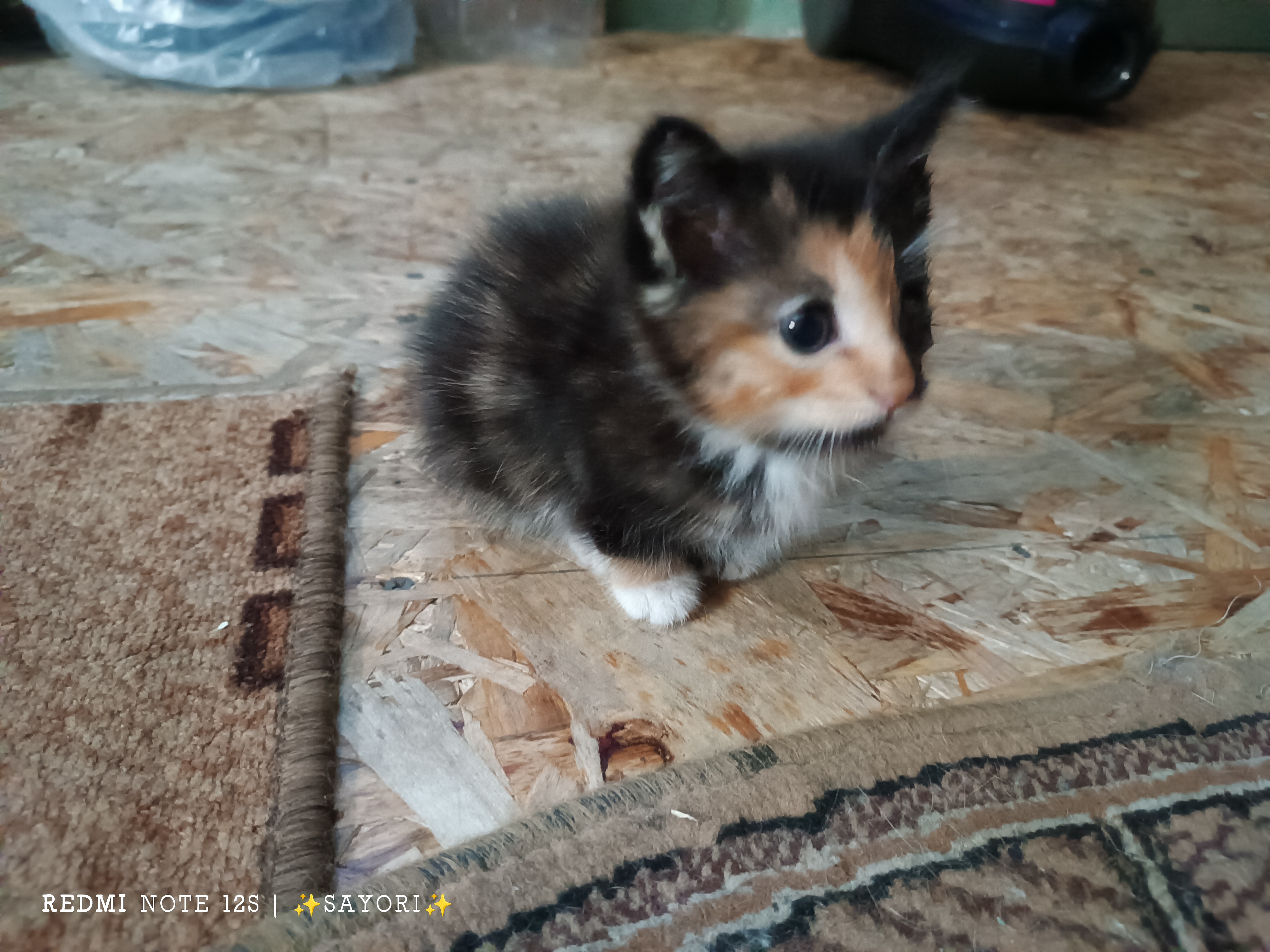 Начался дождь, моя подруга накрыла коробку дождевиком потому что был сильный дождь, а потом пошла домой. Взрослые потом позволили мне занести её в дом, отмыть и оставить в месте подальше от двух других кошек. Она была ещё крохой, кушать сама не могла, и на глазике была странная плёнка. Я бы оставила её у себя, но взрослые были против. Мы отдали её моей бабушке.