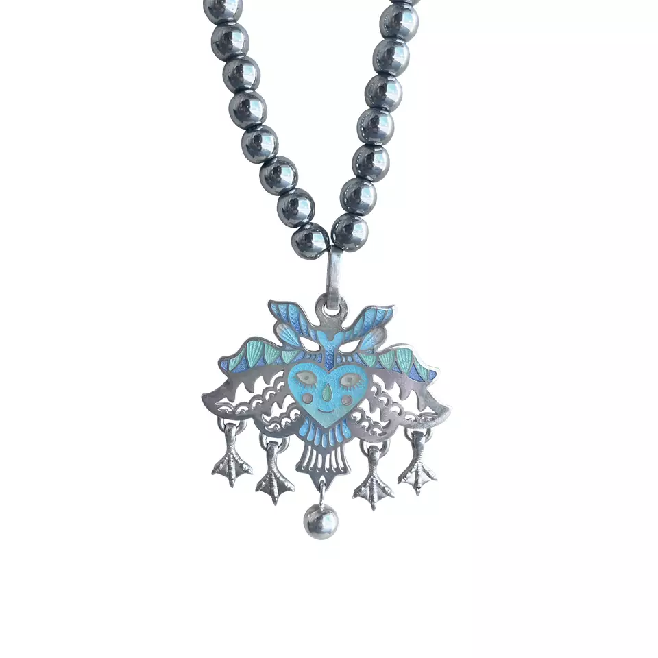 Не все обращают внимание на коллаборации с художниками, хотя часто лимитированный тираж обретает большую ценность уже после выхода и солдаута. Магическое украшение от Ульяны Подкорытовой и Маши Еськиной, выполненное в технике горячей эмали, — это компактное исследование на тему мифологий и представлениях об отношениях человека с природой. Отлично подойдет для фанатов фольклора и сакральных артефактов.