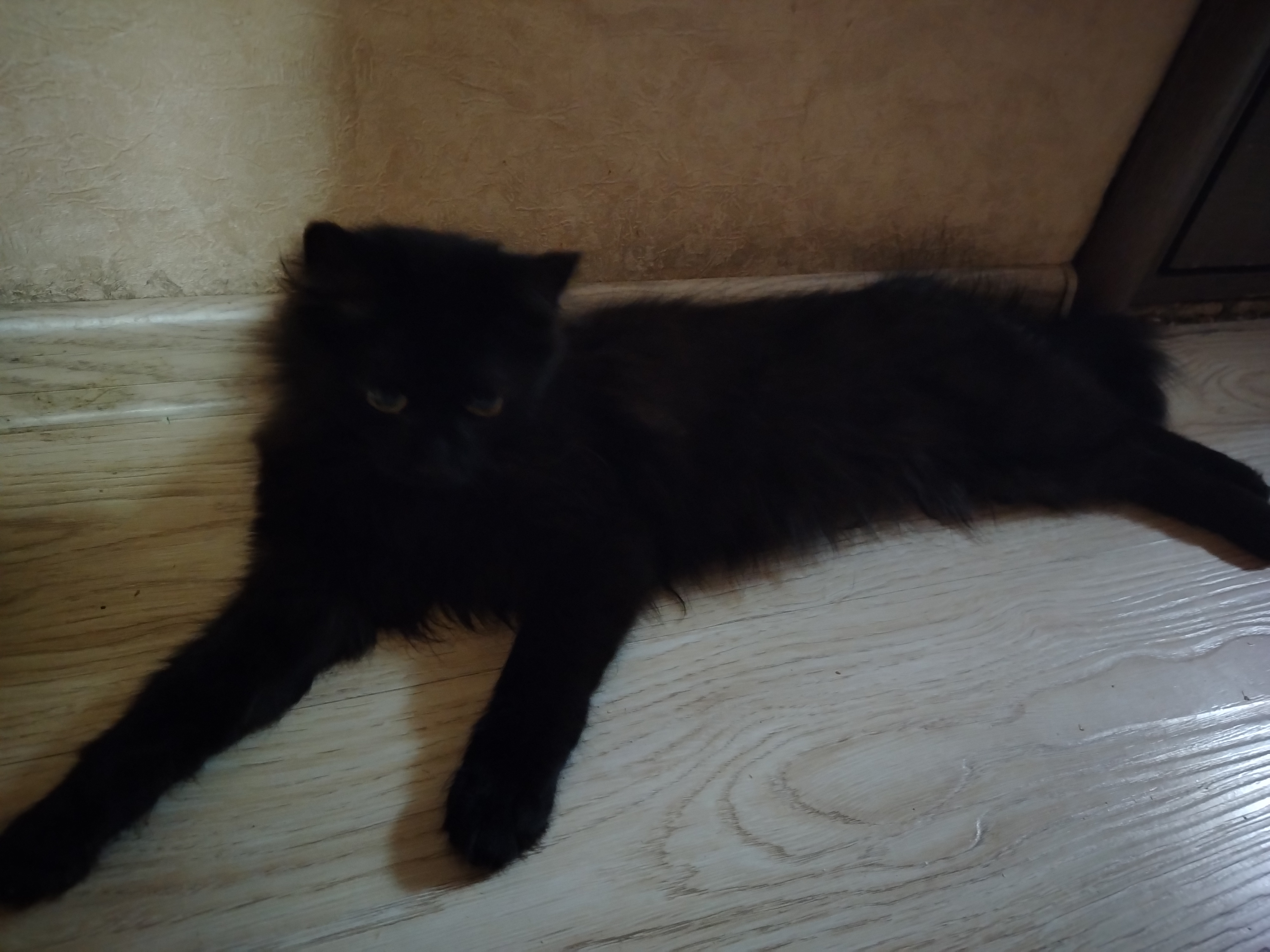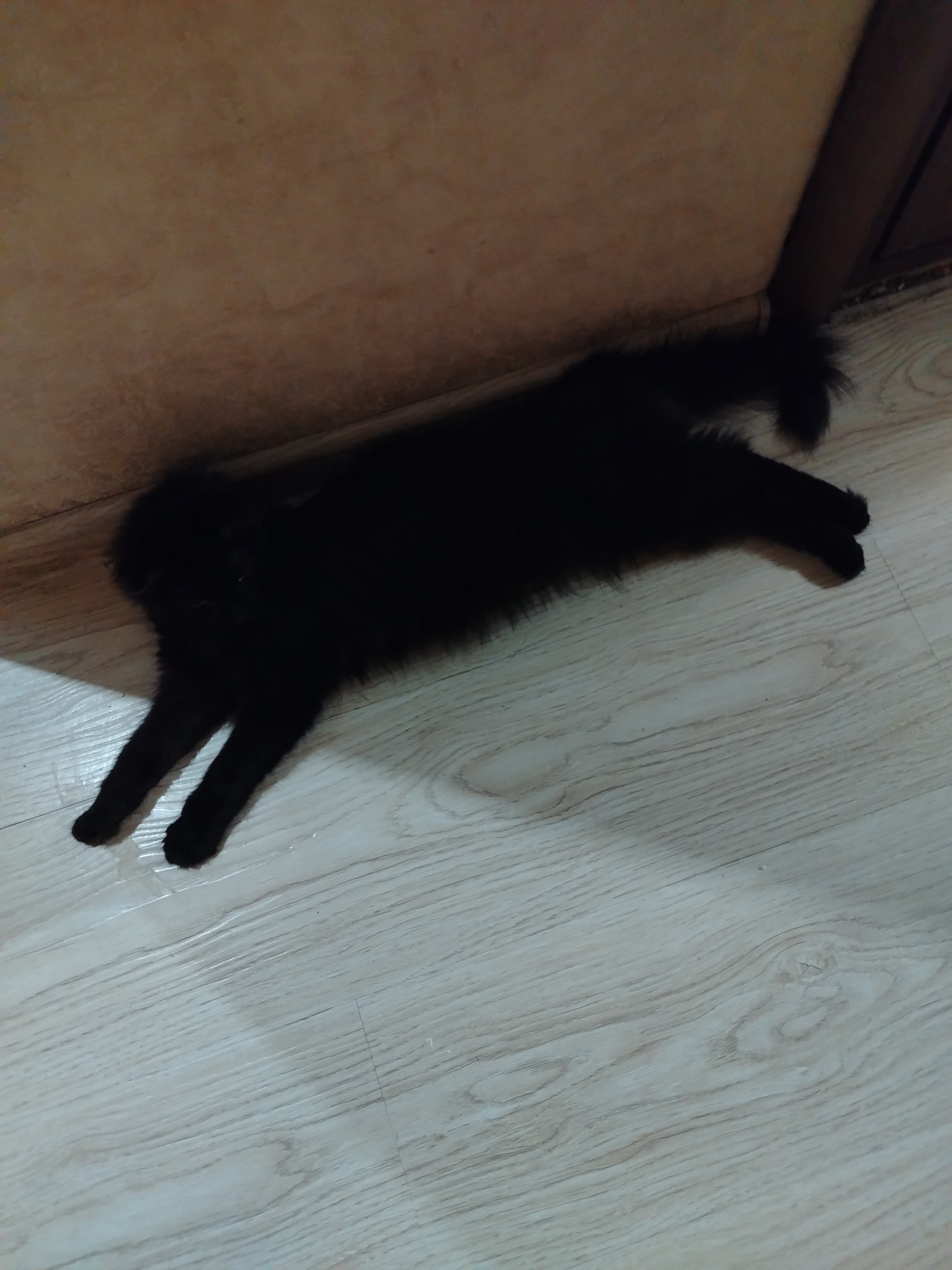 Так вот, сейчас она маленькая, чёрненькая и с длинными конечностями, так что в полутьме и в лежачем положении больше напоминает коврик и кажется плоской) ❤️🤣