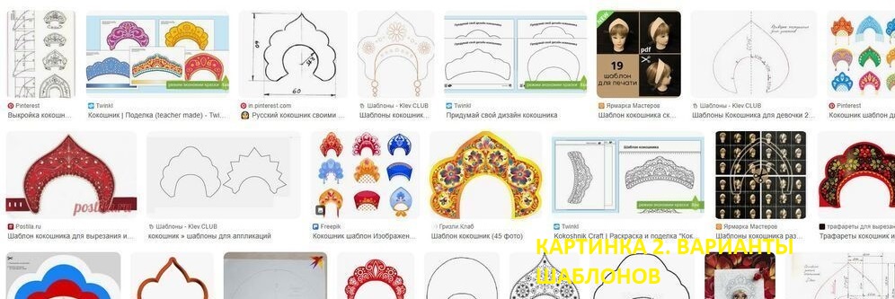 Я начал с референсов. Открыл Pinterest, набрал «кокошник шаблон», «русский орнамент», «этно-декор» — и завис на полчаса. Форм кокошника десятки: от строгой арки до ажурного пятилепесткового силуэта.