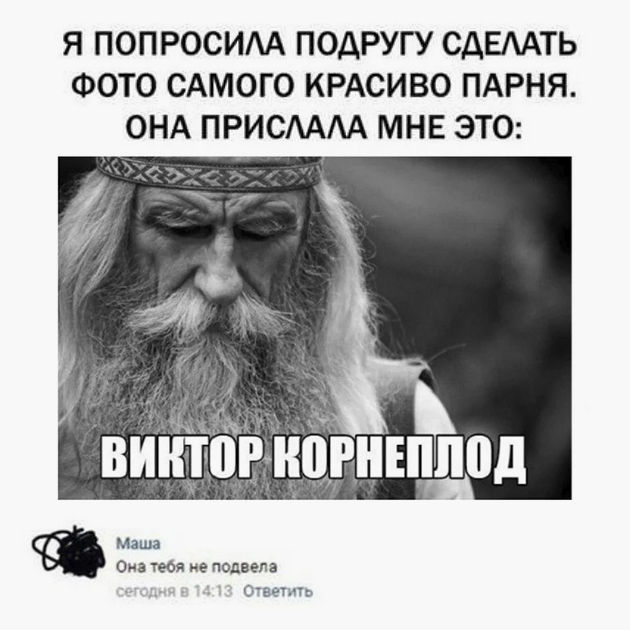 В мемах Виктор Корнеплод красивее Аполлона, сильнее Геракла, могущественнее Зевса и обаятельнее любого голливудского актера. Все потому, что в нем заключена сила славянской земли, а его взгляд прочнее стали.
