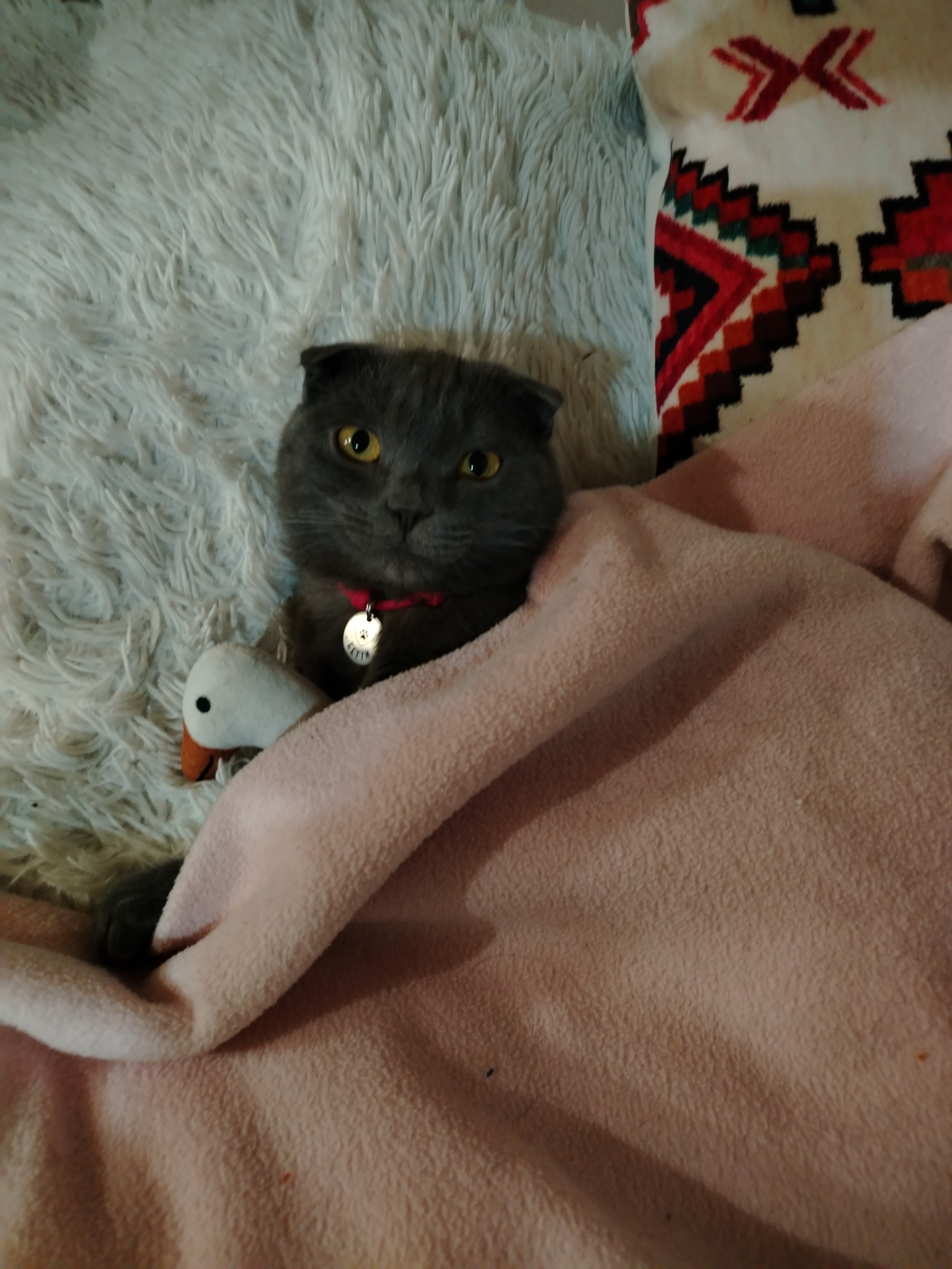 Всегда с ней спит. Гусик у неё вместо подушки)