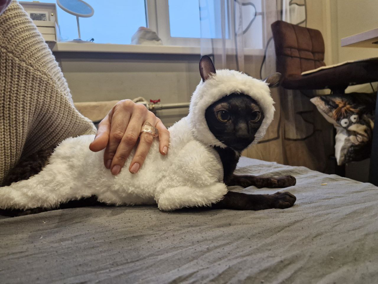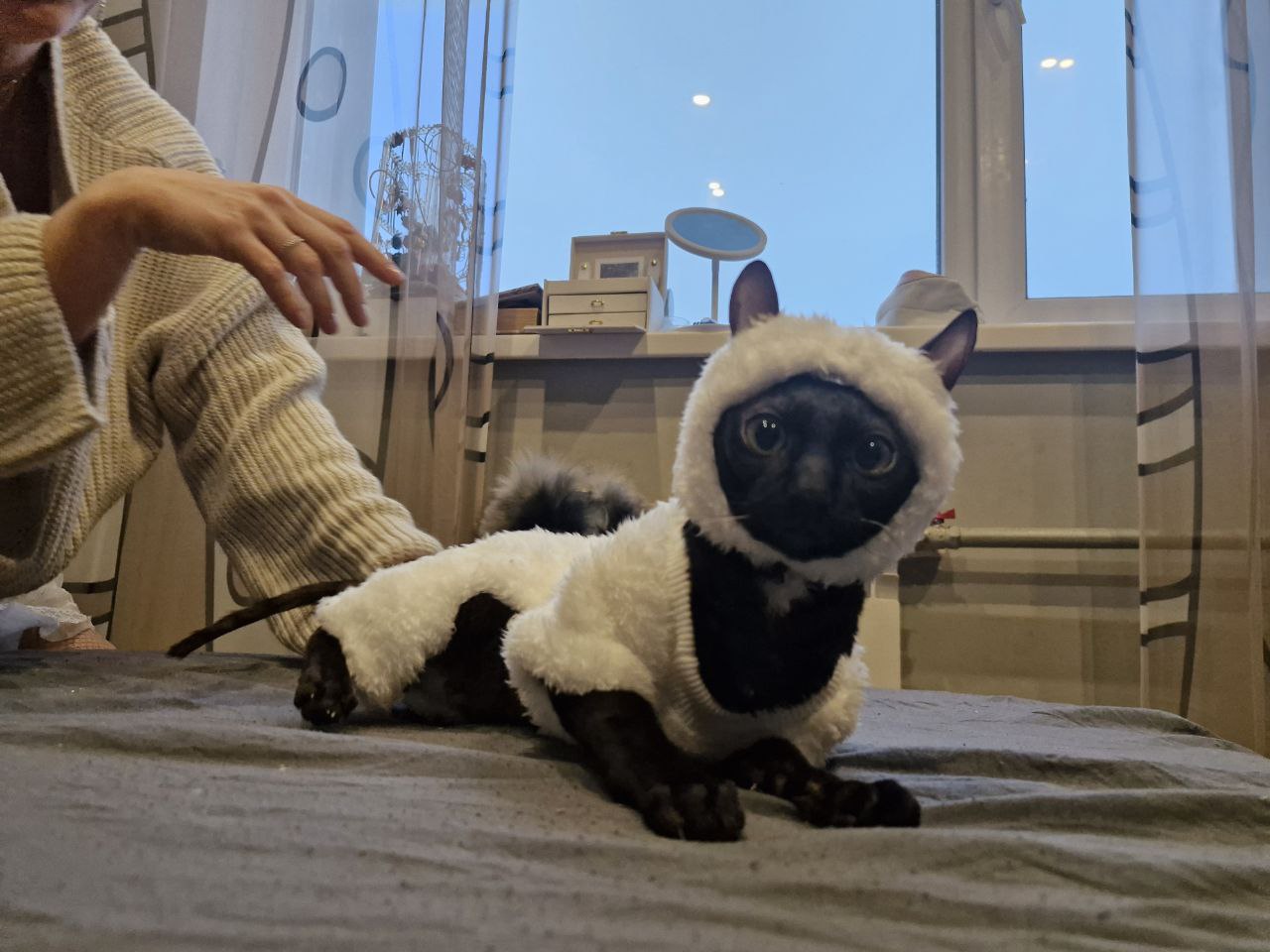 Фото питомца: кошка Буся примеряет новый кафтанчик