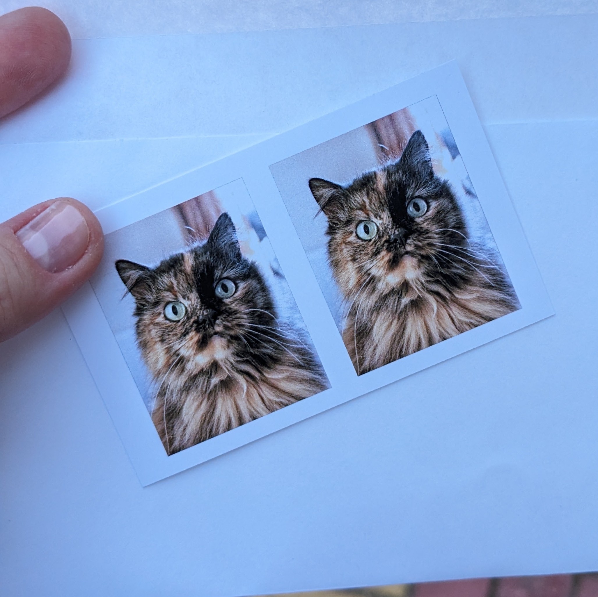 А ещё я почему-то сочла важным вклеить в кошкин паспорт фотографию. Всё серьёзно же, на отдельном сидении полетит! Можно представить, с каким лицом работник киоска "Фото на документы" открыл файл с кошачьим портретом. Но сделал всё идеально.