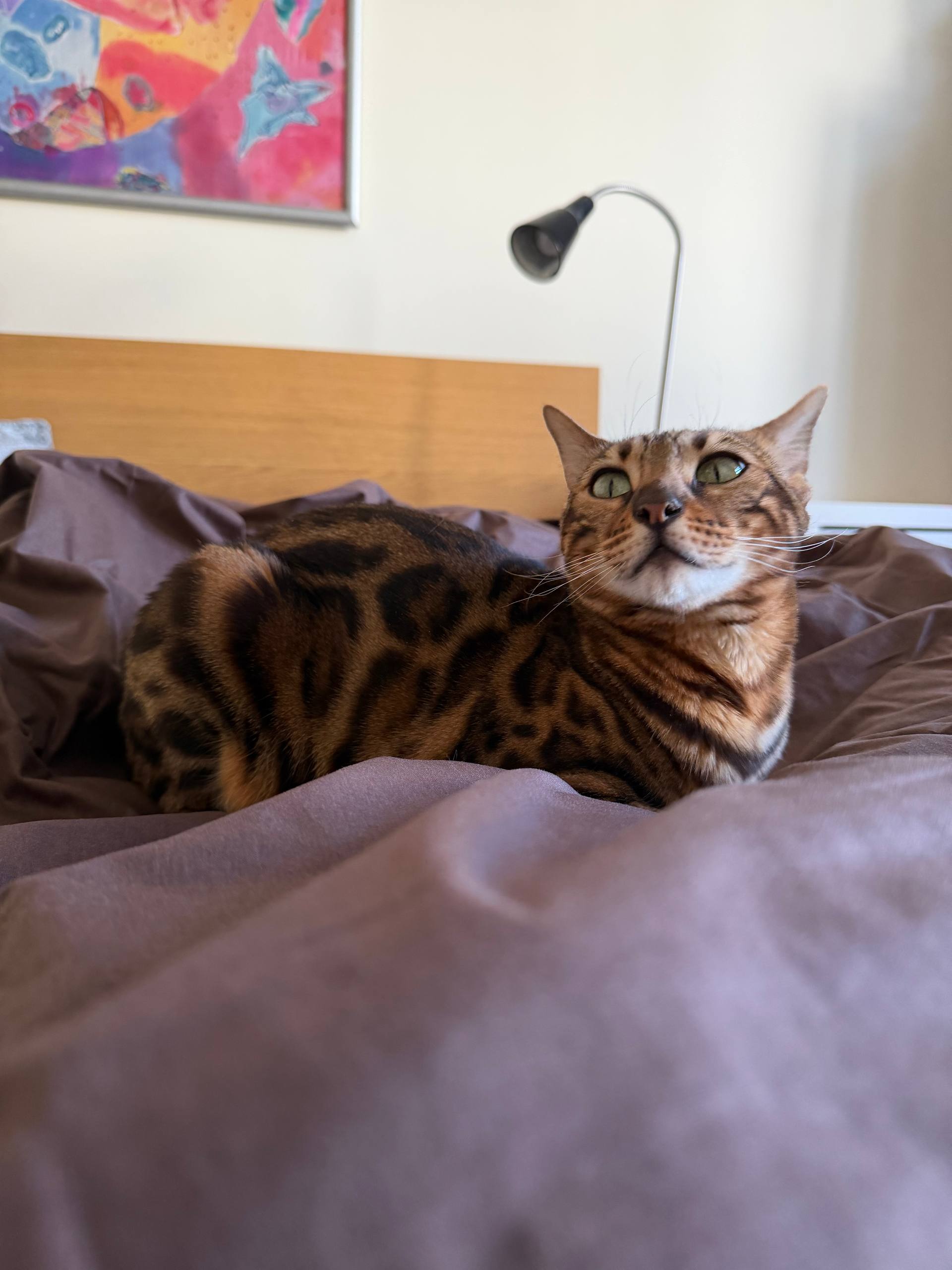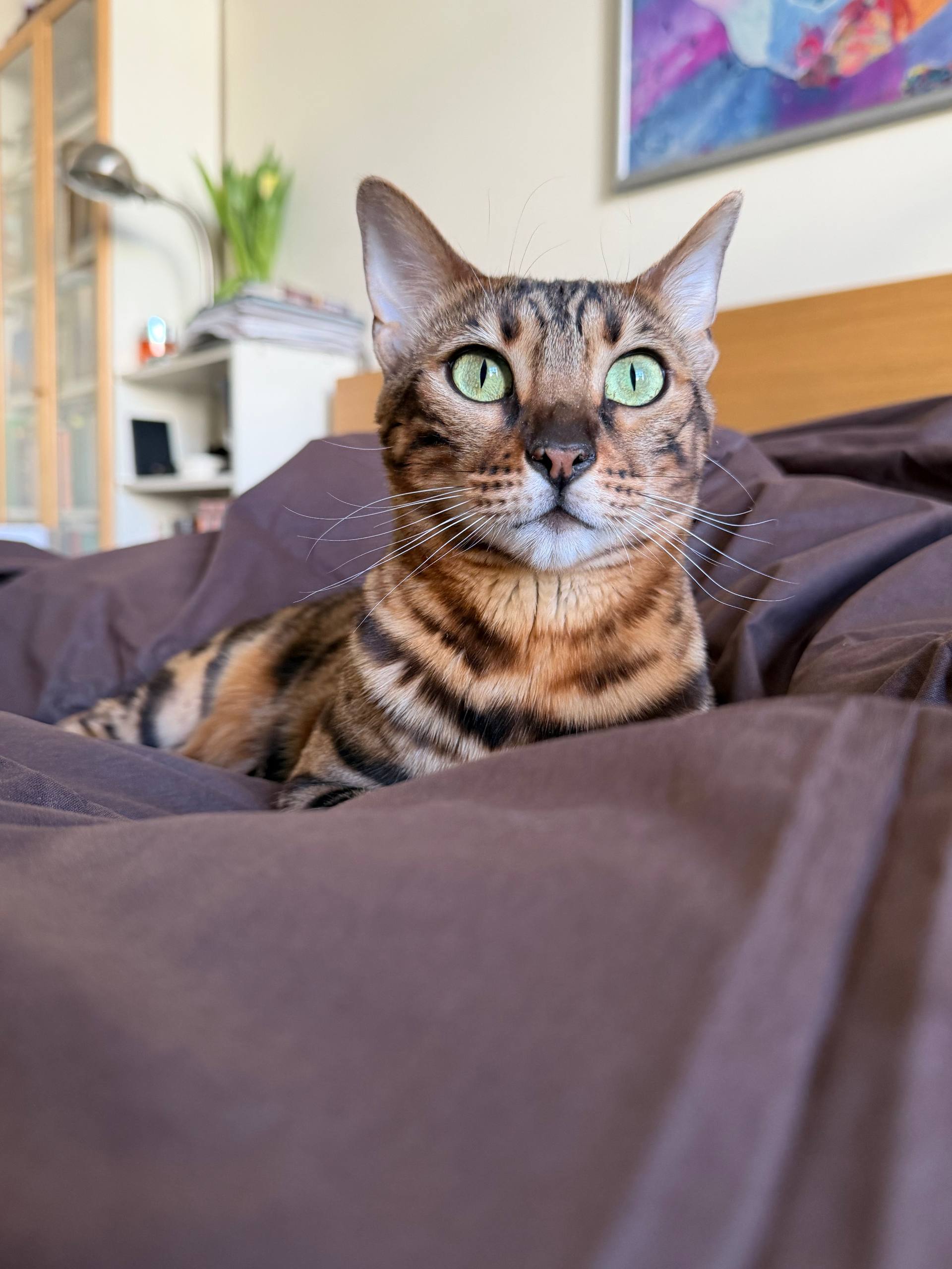 Фото питомца: кошка Юля оценивает новое постельное белье