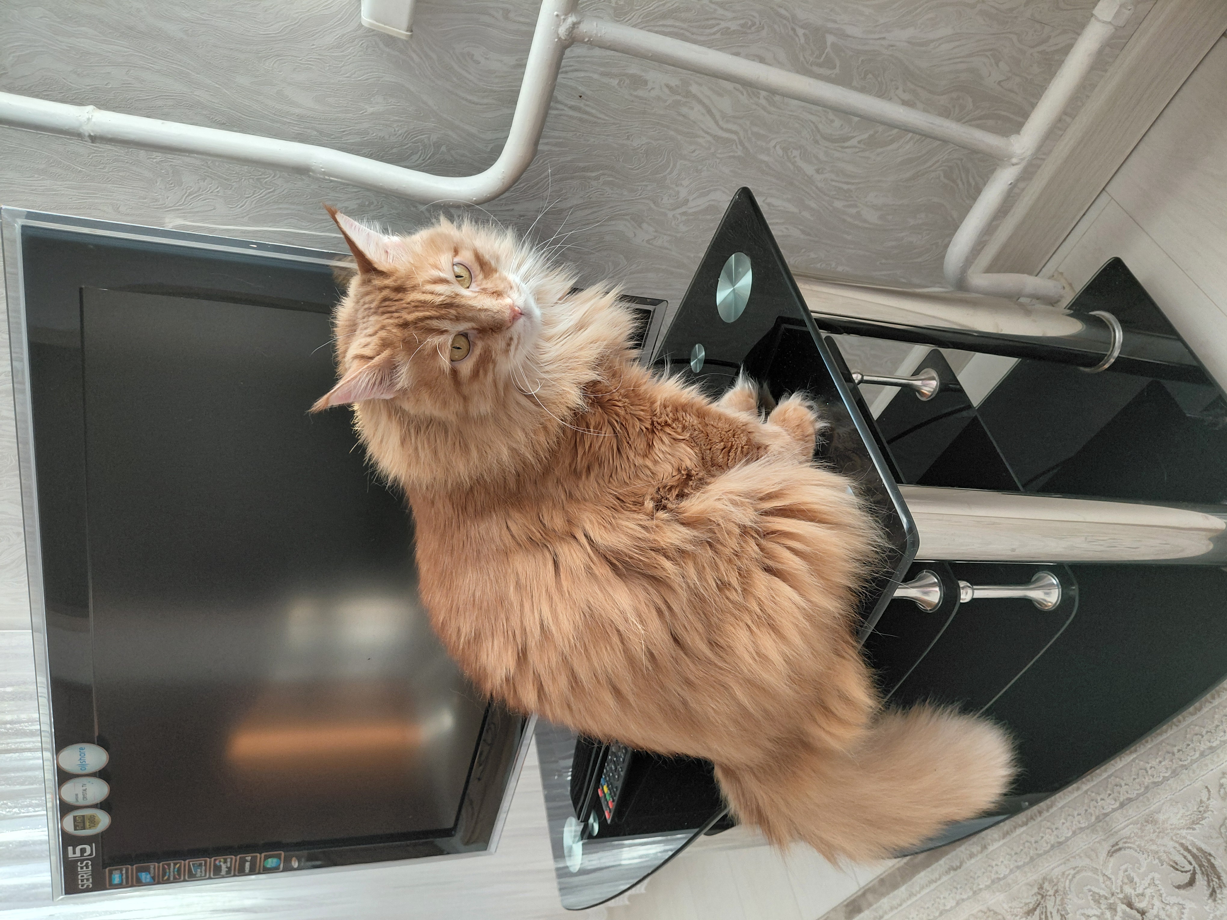 Фото питомца: кошка Маечка сидит у телевизора