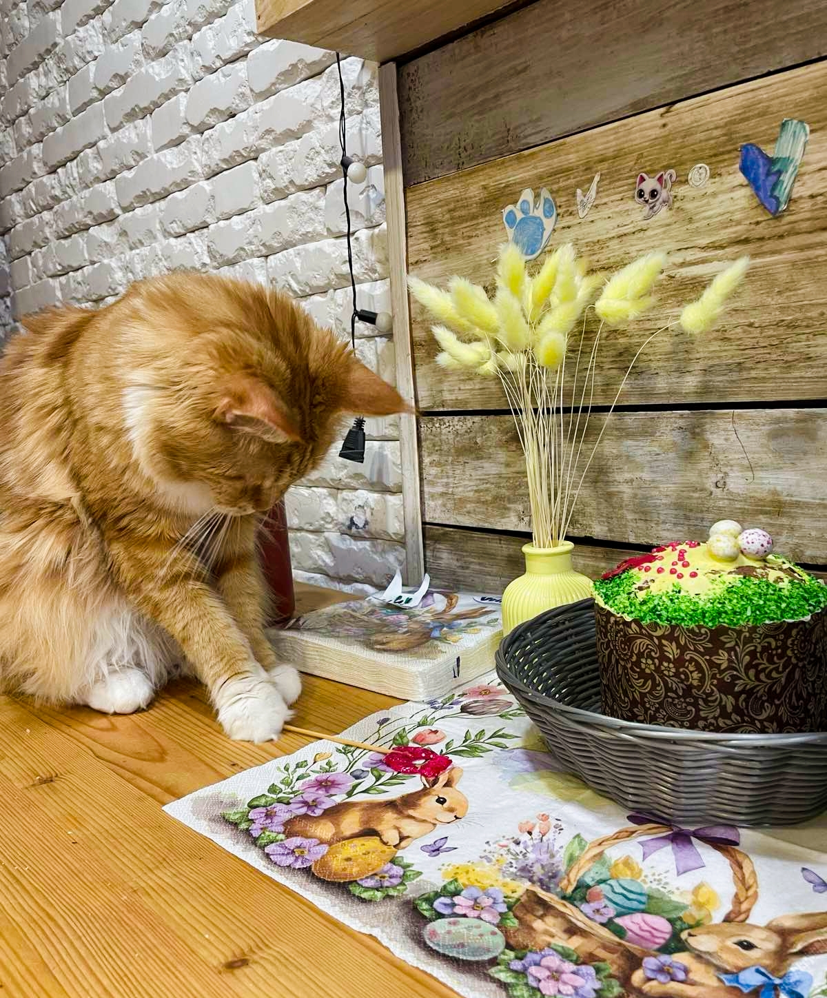 В феврале нам исполнилось два года и из маленькой Нюши мы каким-то образом превратились в Моню или Монику🫣Уж не знаю как так произошло,но все чаще мы так называем нашу принцессу. Пасха,куличи,но как же без Мони?!? Она тут как тут🐾🐾🐾