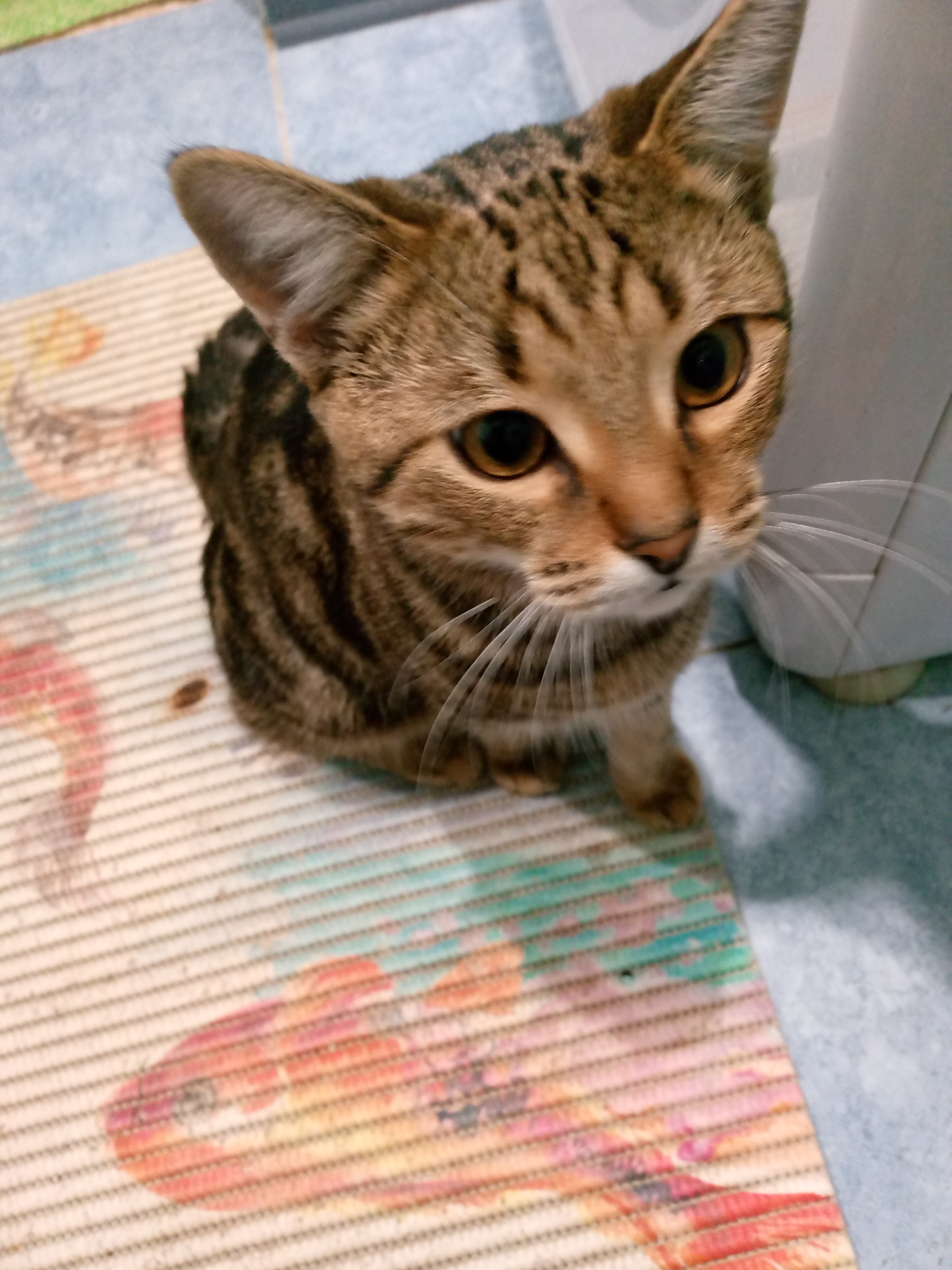 Я увидела объявление в авито. Что ищут заботливых хозяев для котят 😺 с дальнейшим отслеживанием судьбы питомца. И когда мы подошли к вальеру где были котята, только открылась дверка и это 🐾 чудо выкатился оттуда сам…. Один из всех он был пятнистый и напомнил арбуз маленький помещался на ладошку. Месяца полтора.