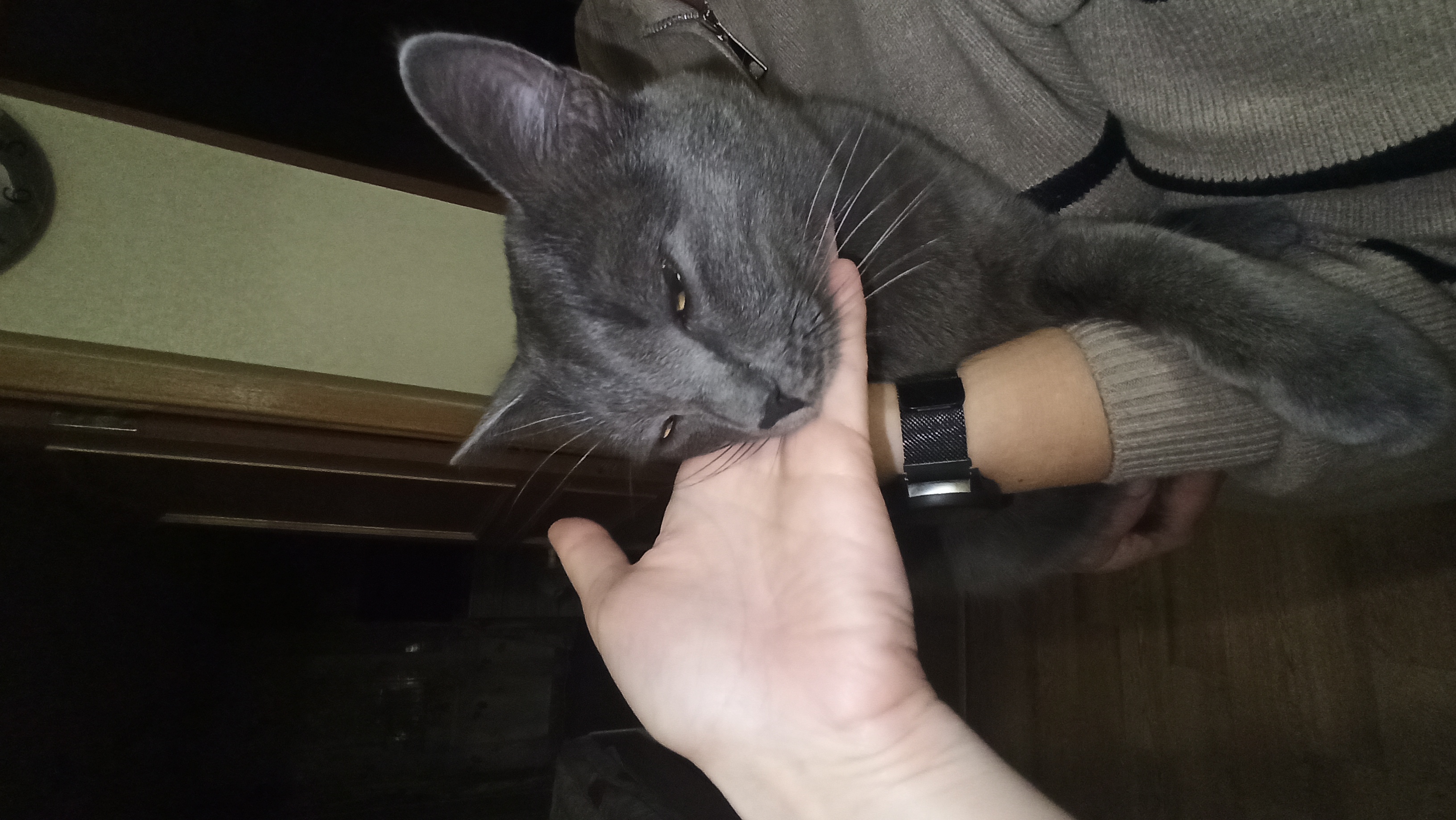 Всем привет! Меня зовут Дымок, ну или Дымка,или Дымыч! Я совсем молоденький,мне примерно год, точно не знаю, т.к. пришел к кожаным осенью прошлого года, но уже успел стать их любимчиком.