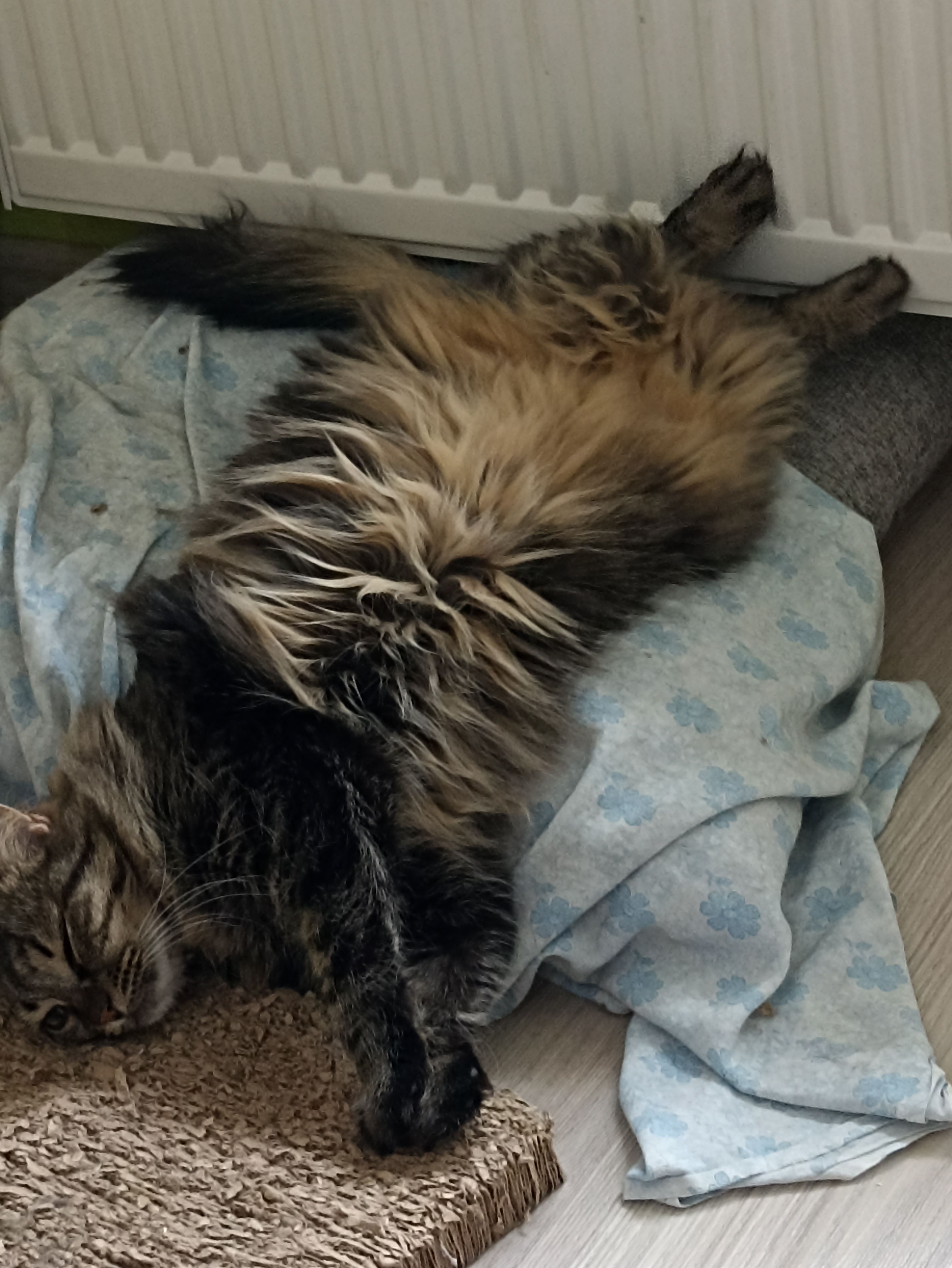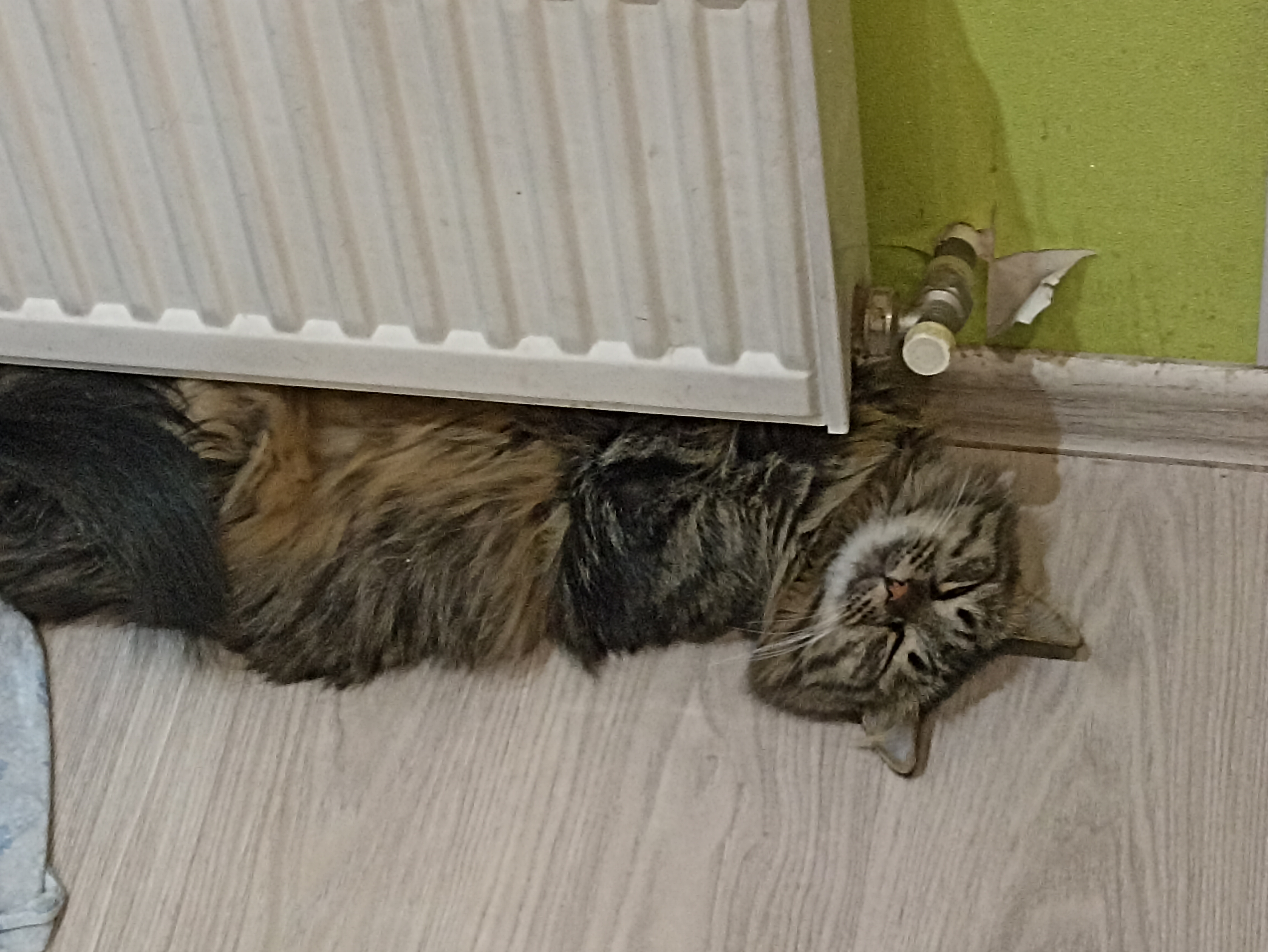 Фото питомцев: кот Филя и кошка Лелька греются у батареи