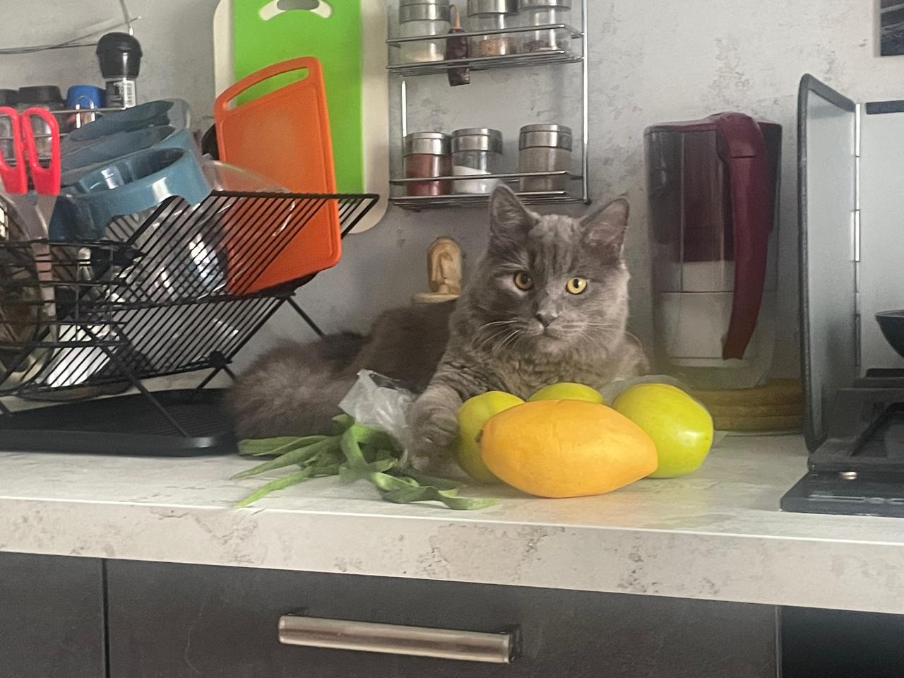 Фото питомца: кот Грисс обожает фотографироваться с овощами и фруктами