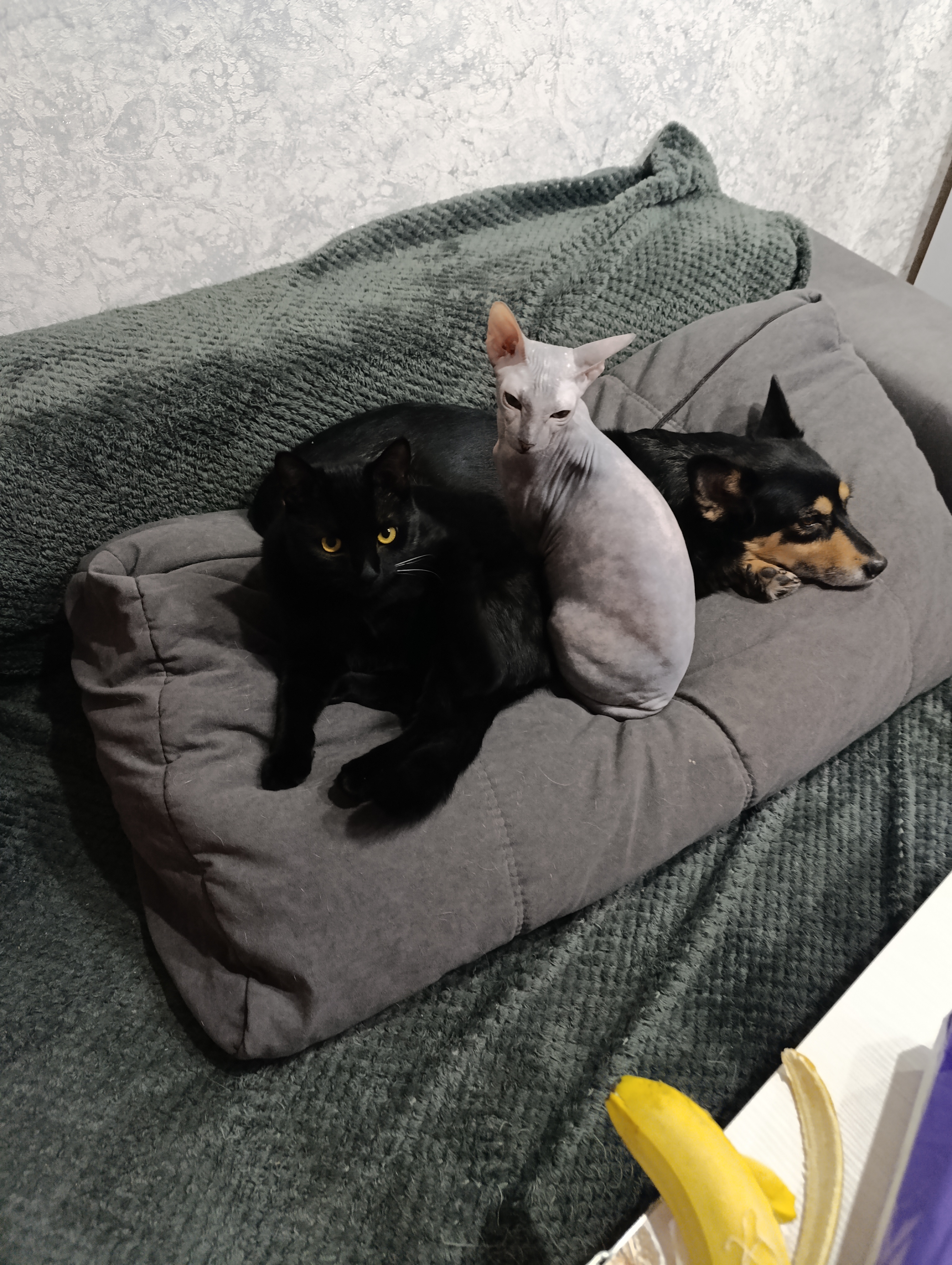 Фото питомцев: кот Кокс, кошка Гера и собака Кроша живут дружно