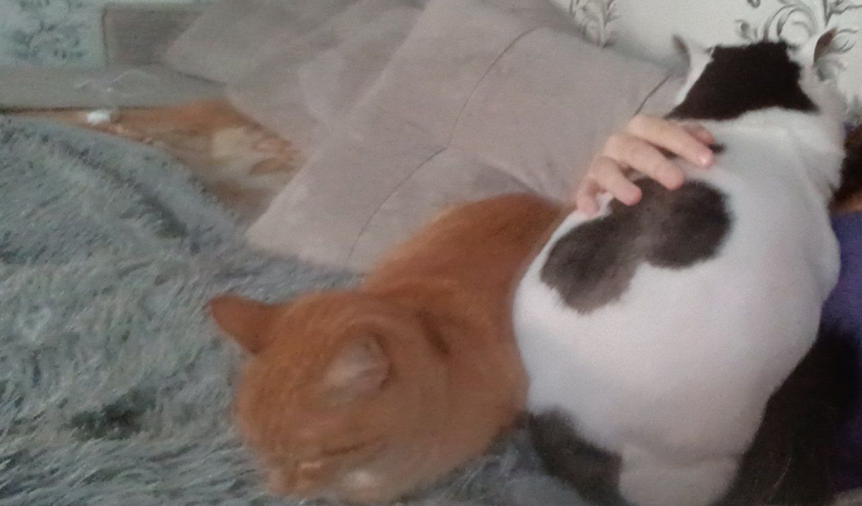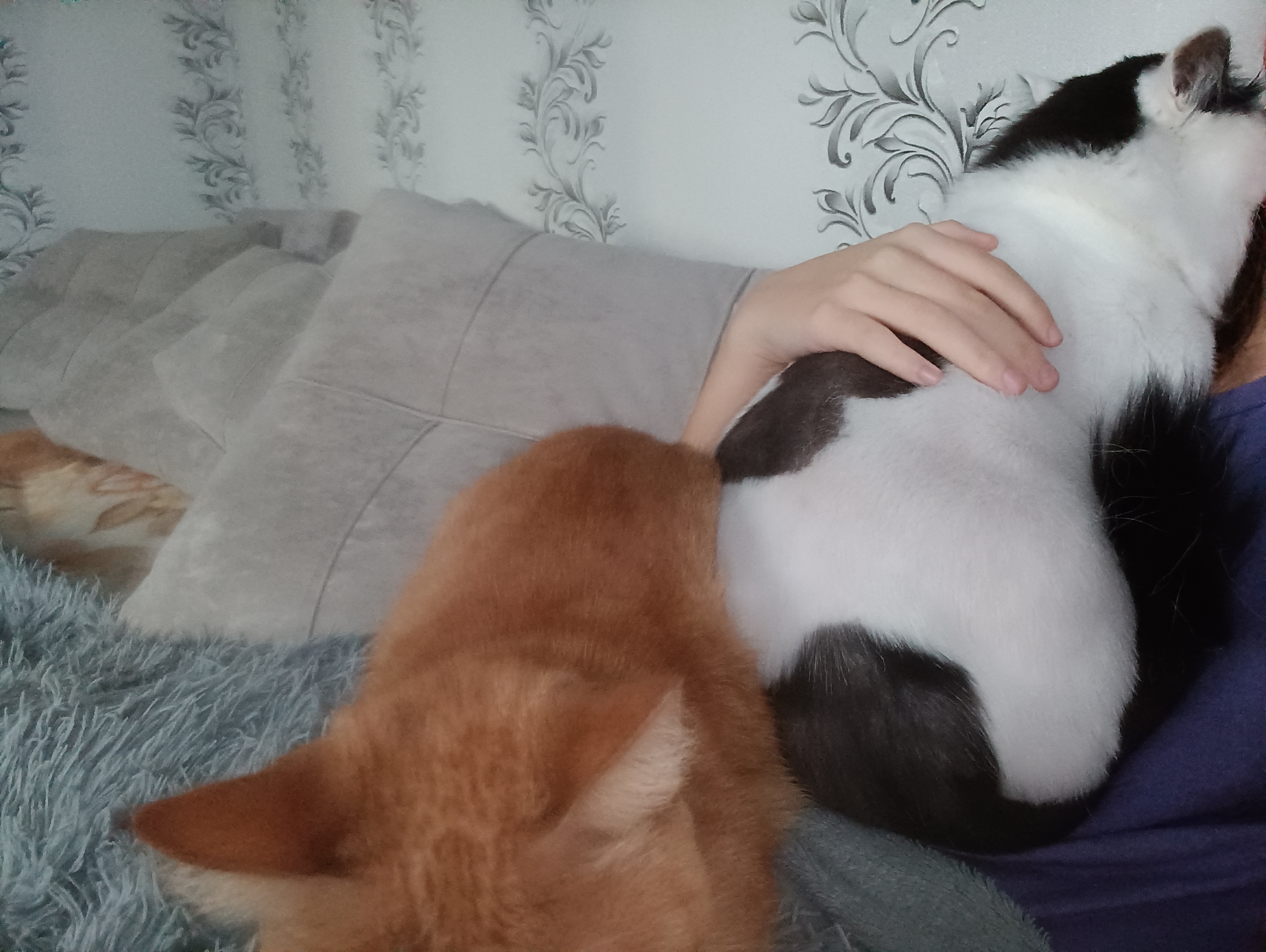 Фото питомцев: кот Кракен и кошка Василиса отдыхают на хозяйке