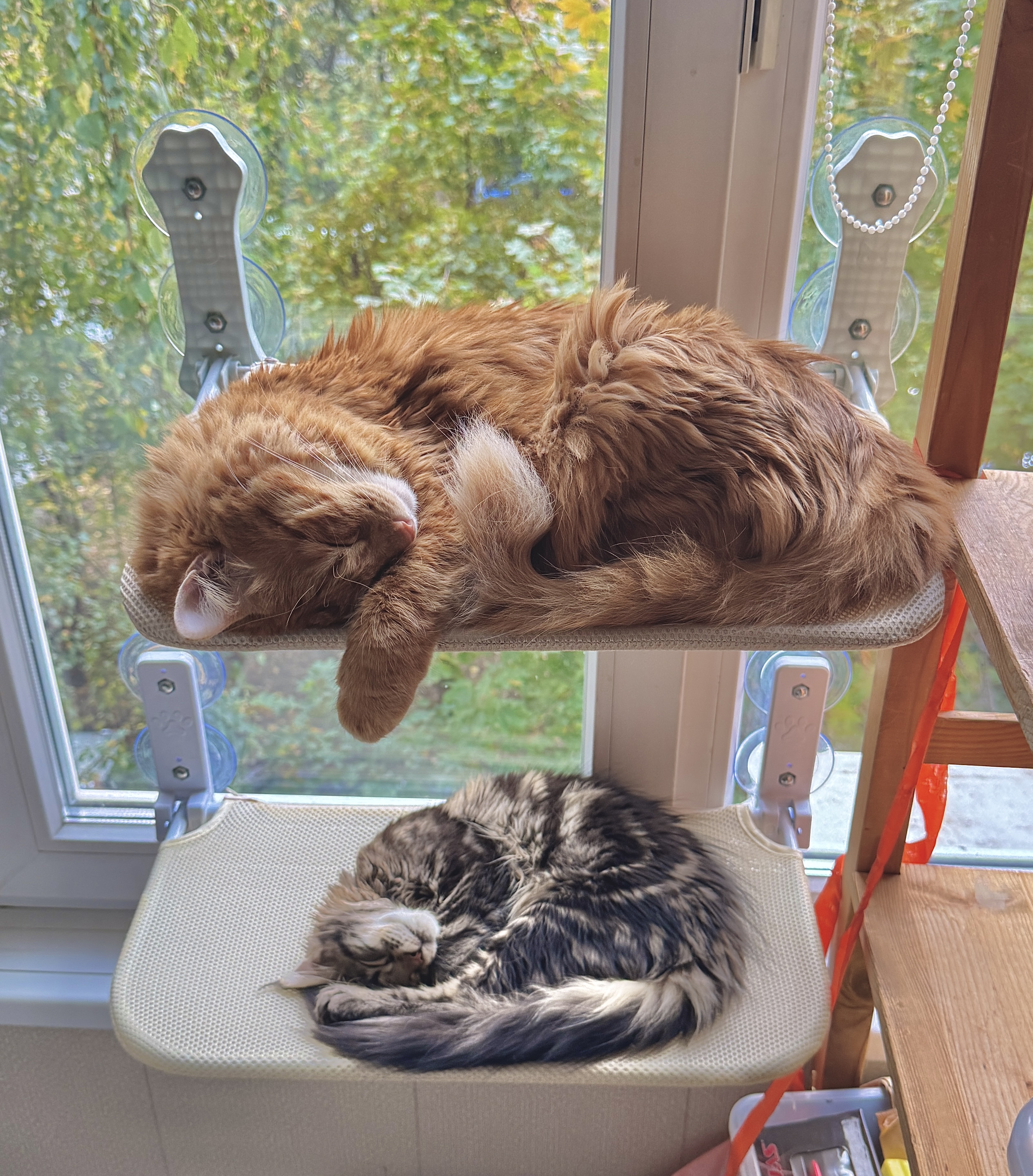 Что же, Кузьма Алексеевич вполне освоился, получил свою автокормушку, гамачок на окно на балконе и, конечно же свою собственную коробку! А ещё потихонечку начинает задирать старшего Лиса Алексеевича ))