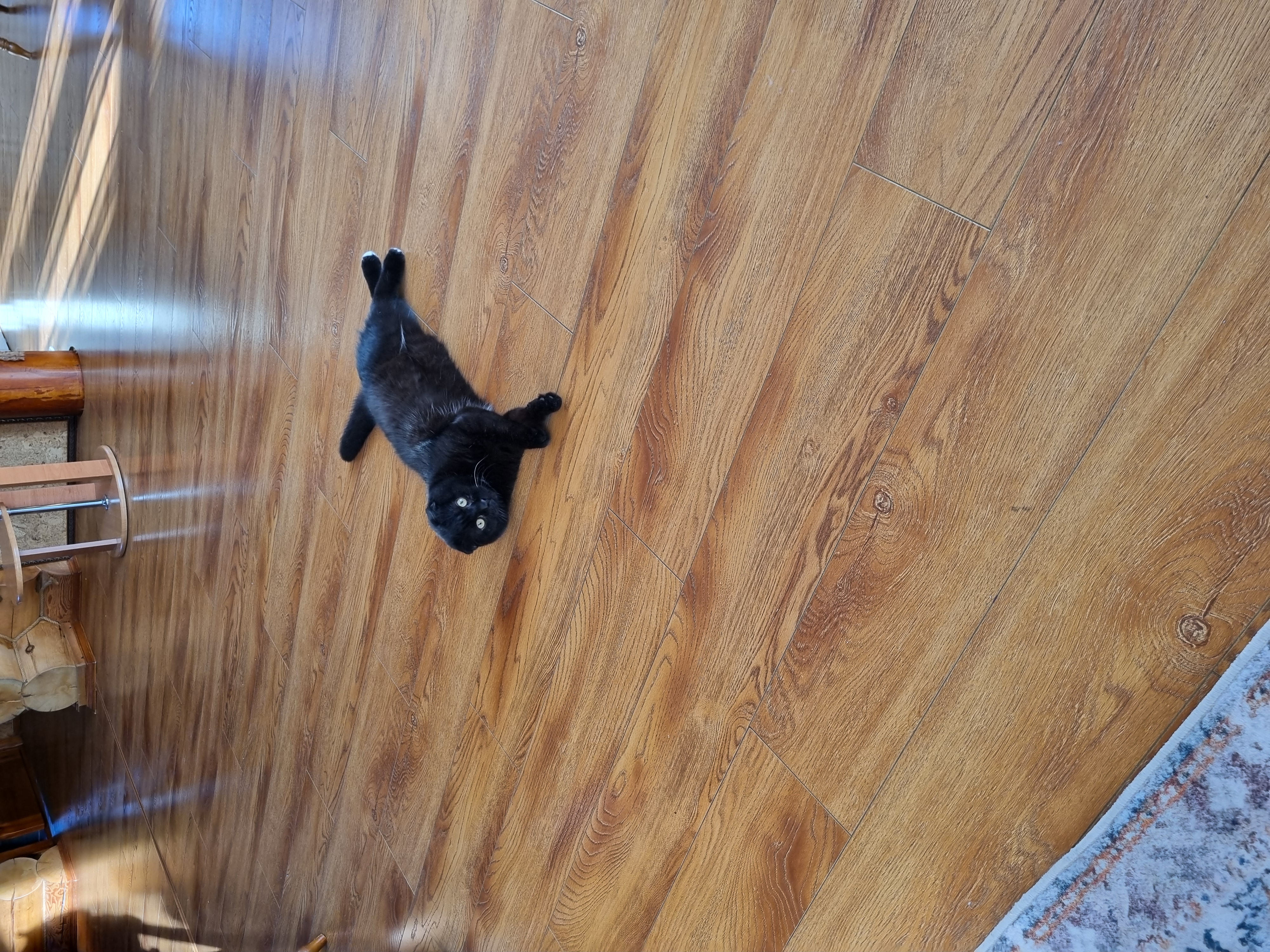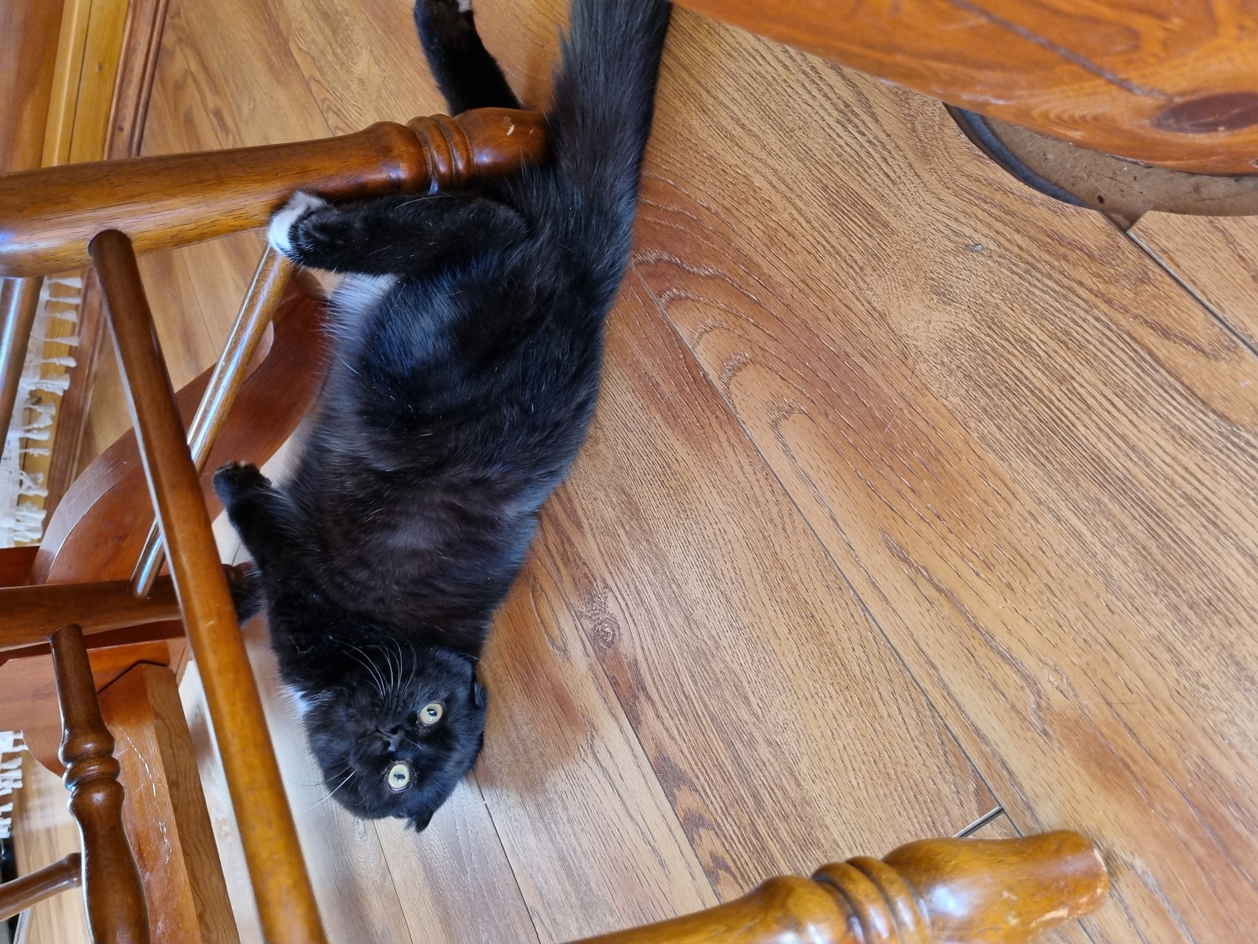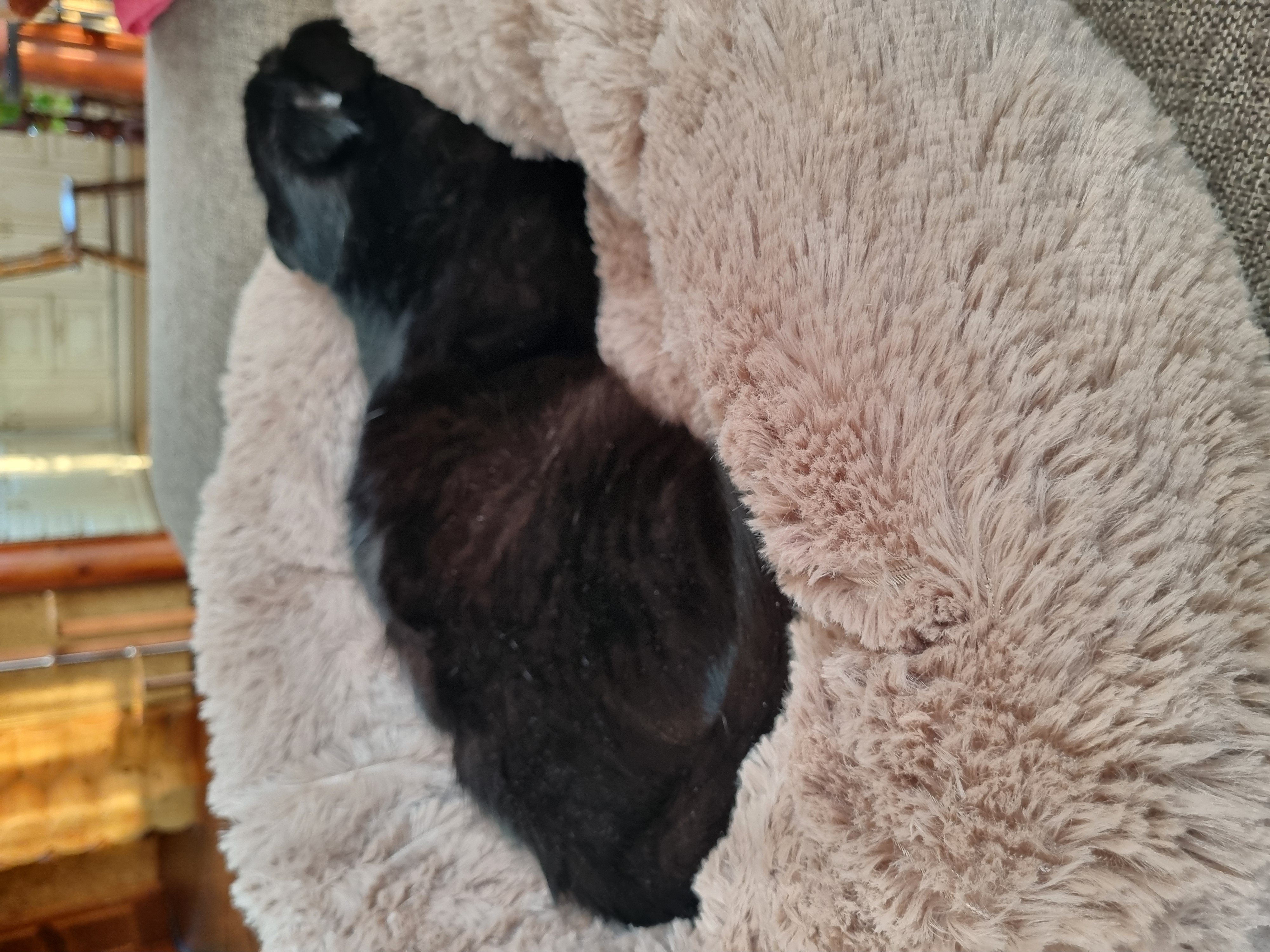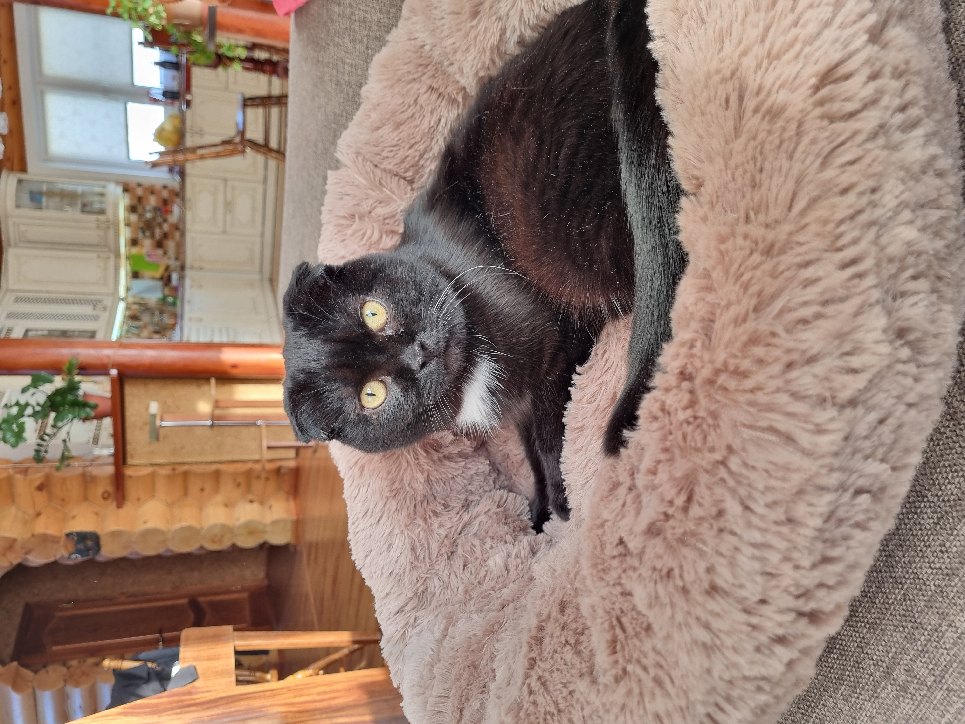 У Марсика новая лежанка, ему очень нравится.Еще он любит играть со стулом, висит на перекладинках